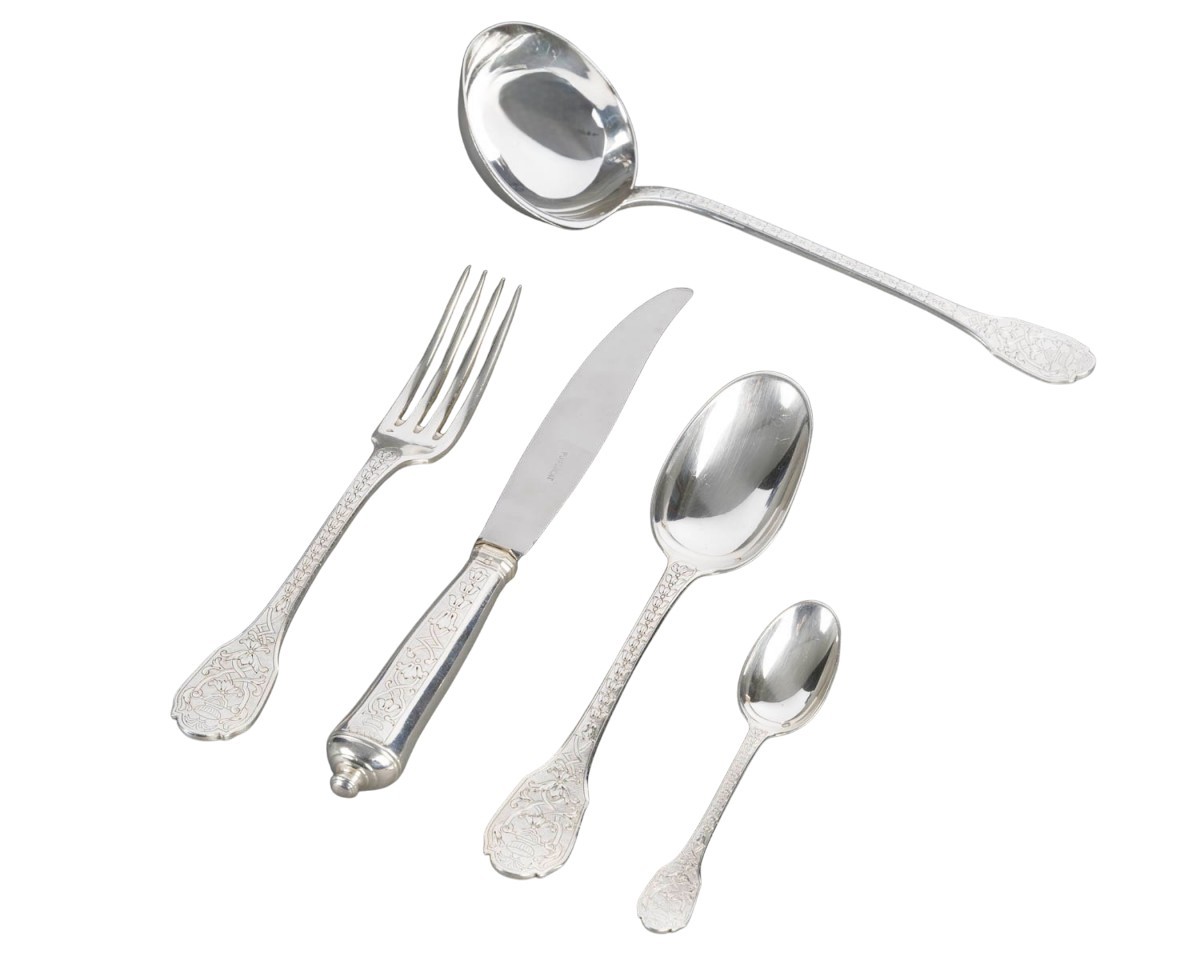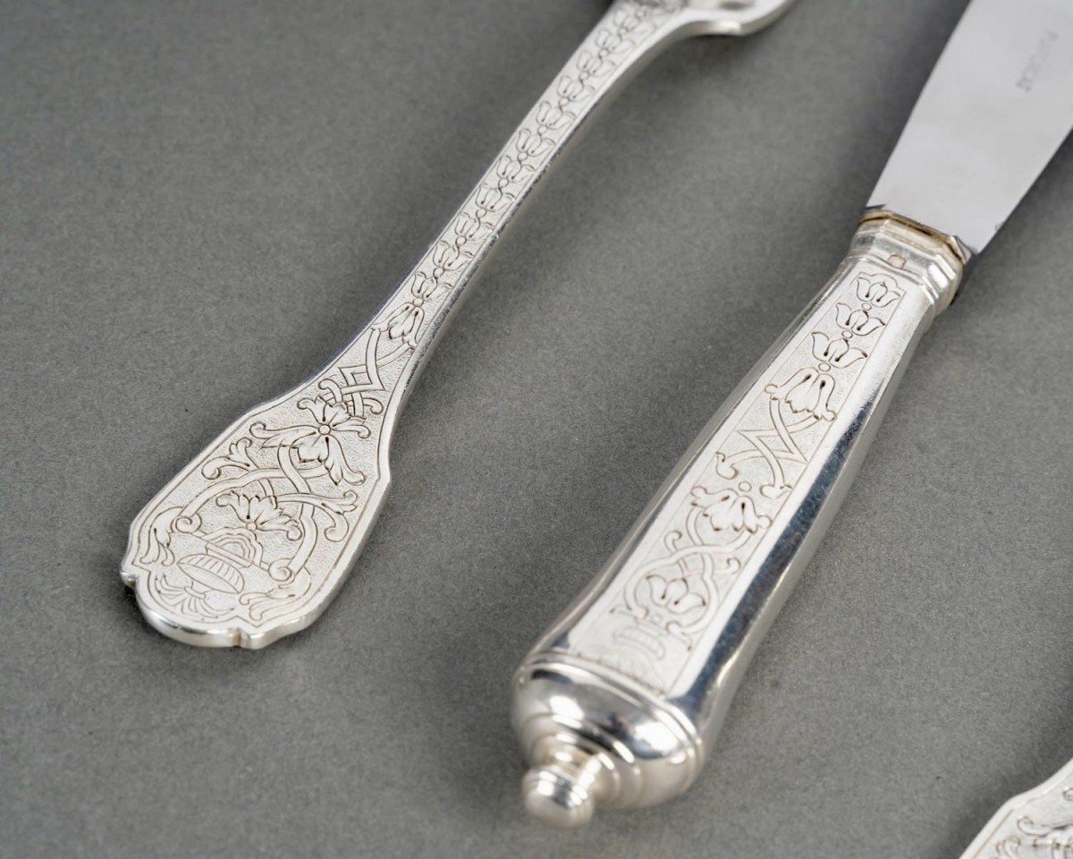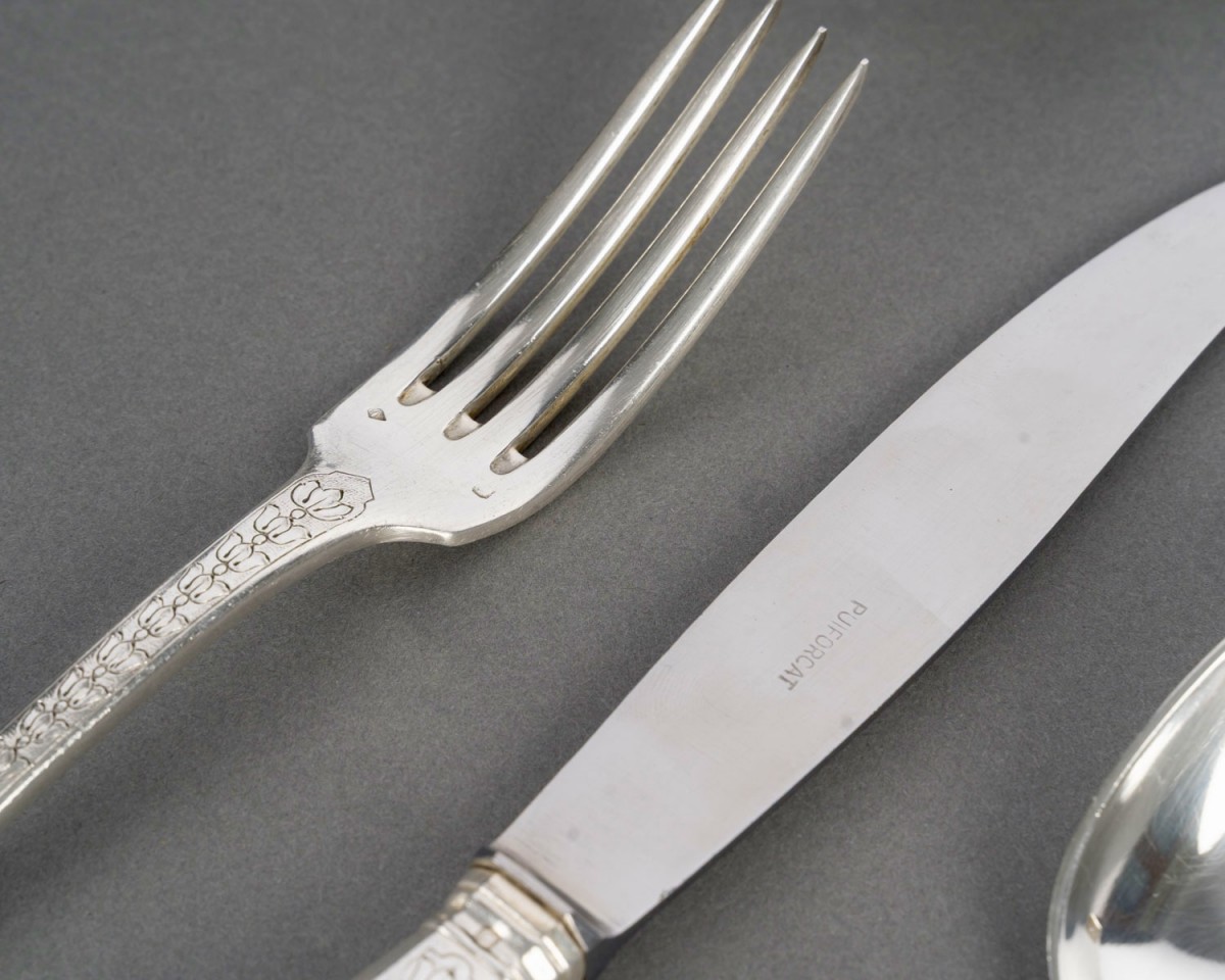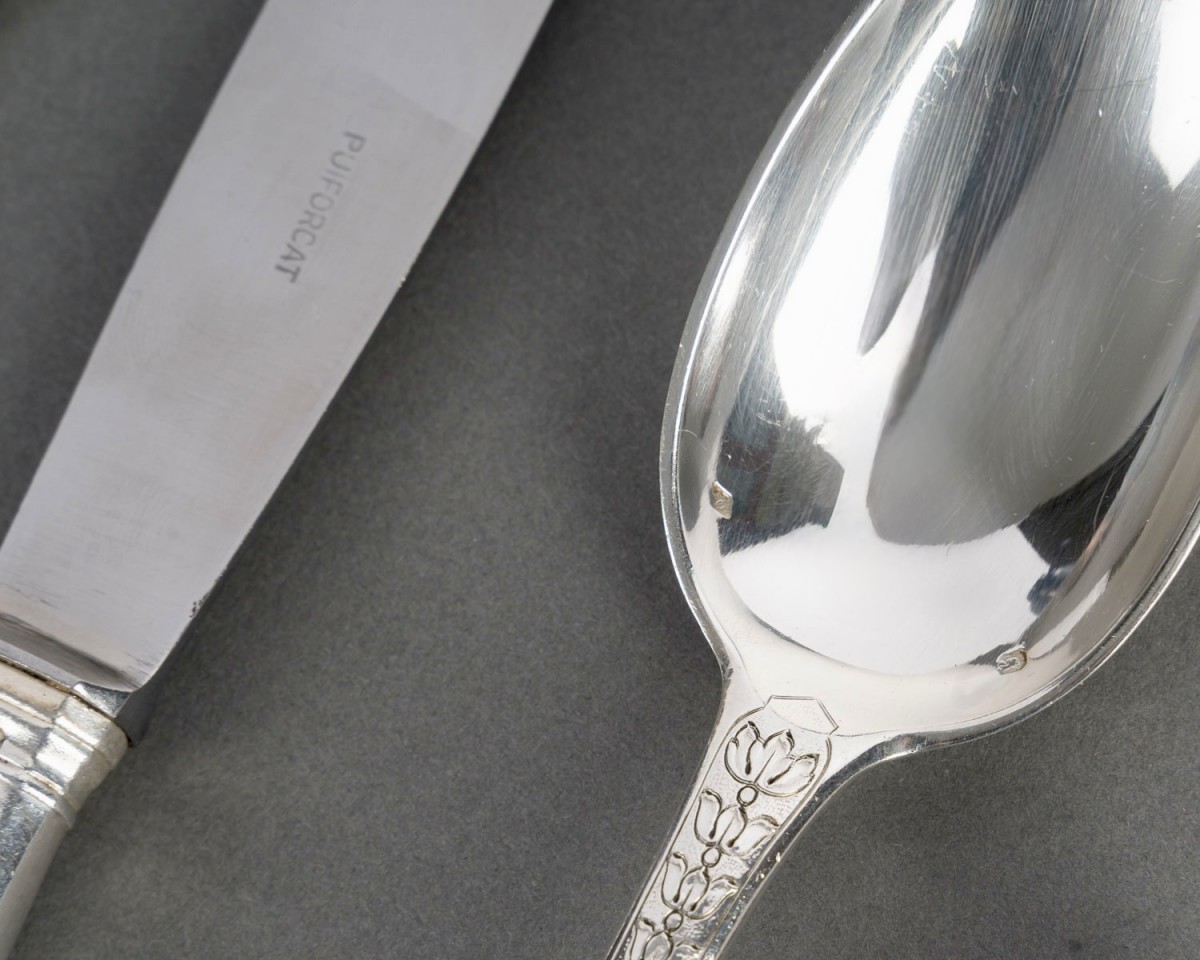 Ménagère "Soubise" en argent massif Minerve Premier Titre 950/1000ème de Puiforcat.