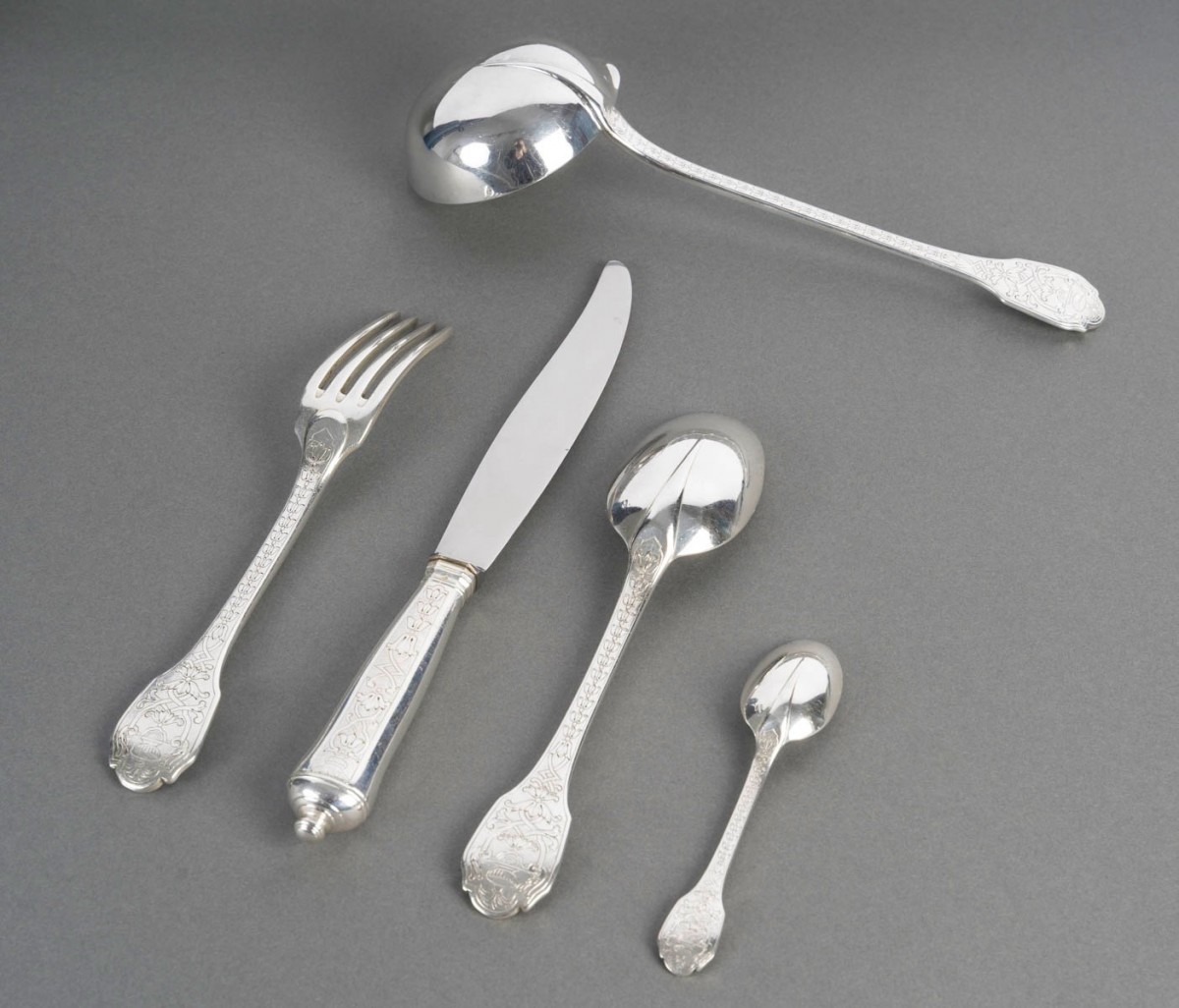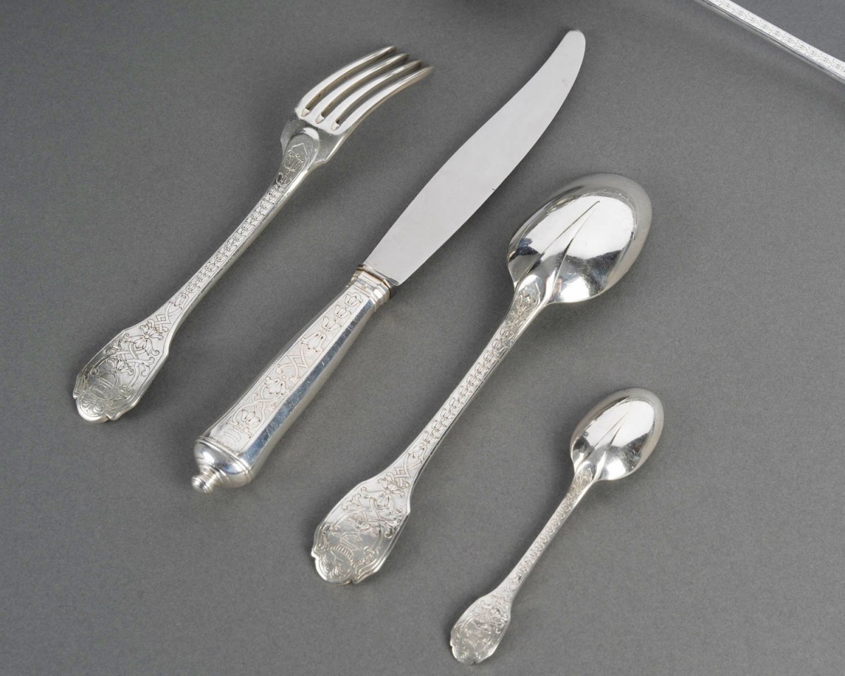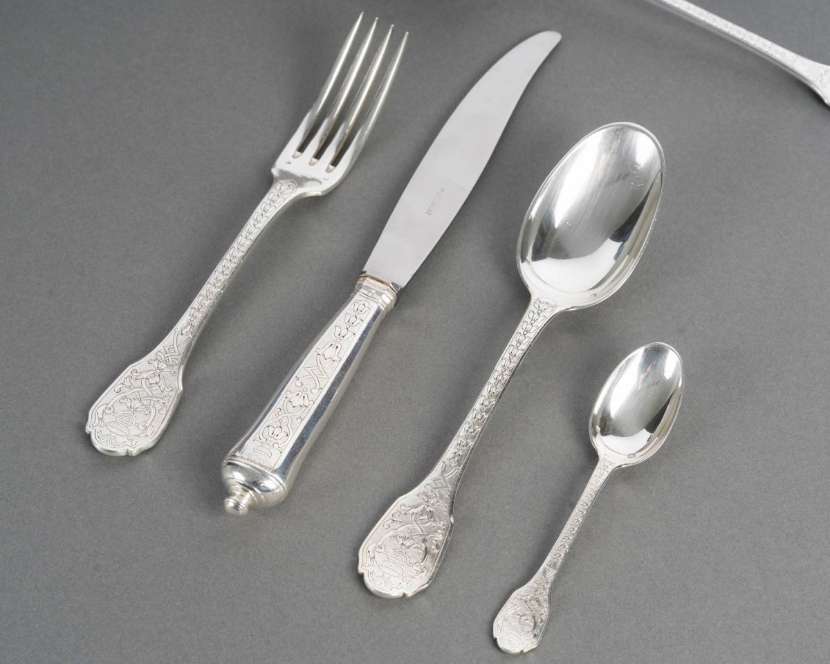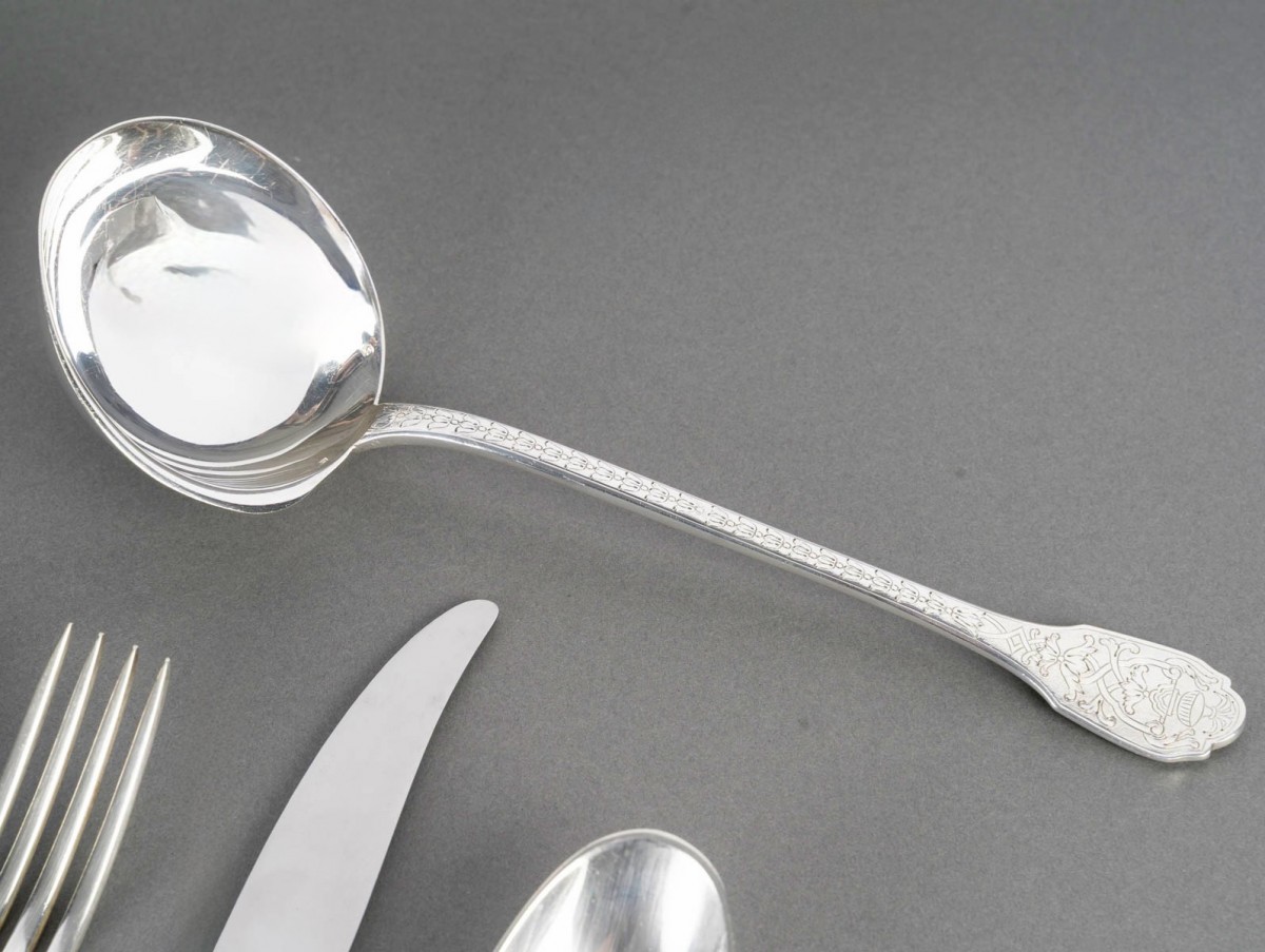 Ménagère "Soubise" en argent massif Minerve Premier Titre 950/1000ème de Puiforcat.