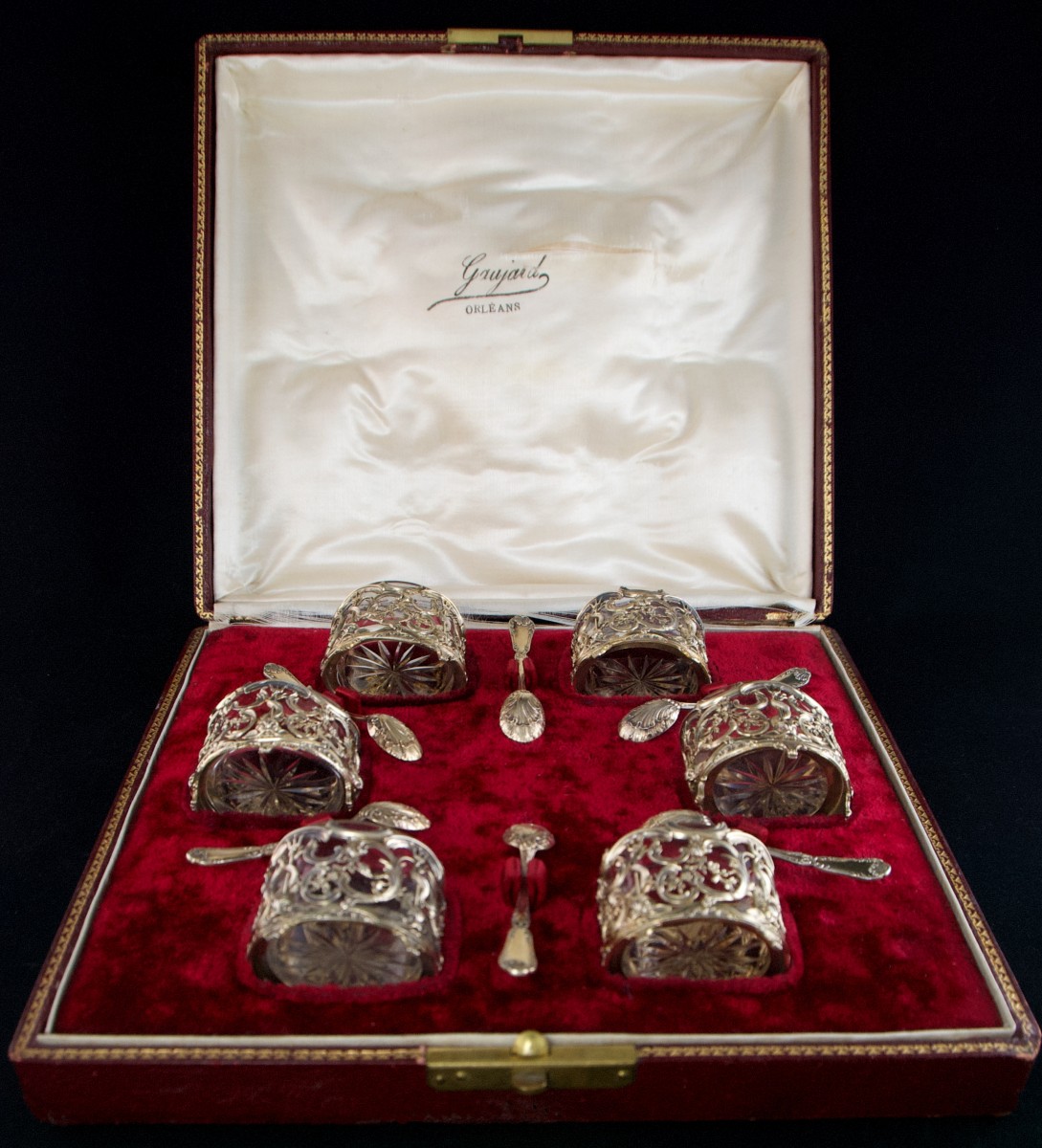 Superbe suite de six salerons de forme ovale et leurs cuillers par Puiforcat.