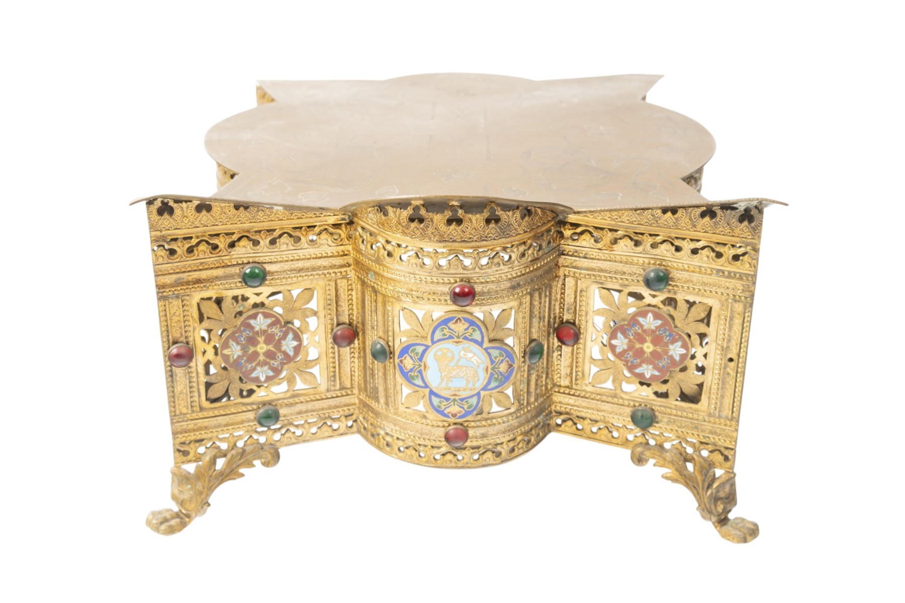 A décor de médaillons émaillés figurant l'Agneau biblique.