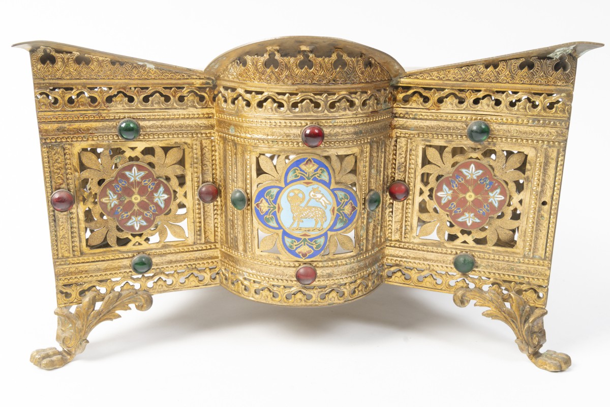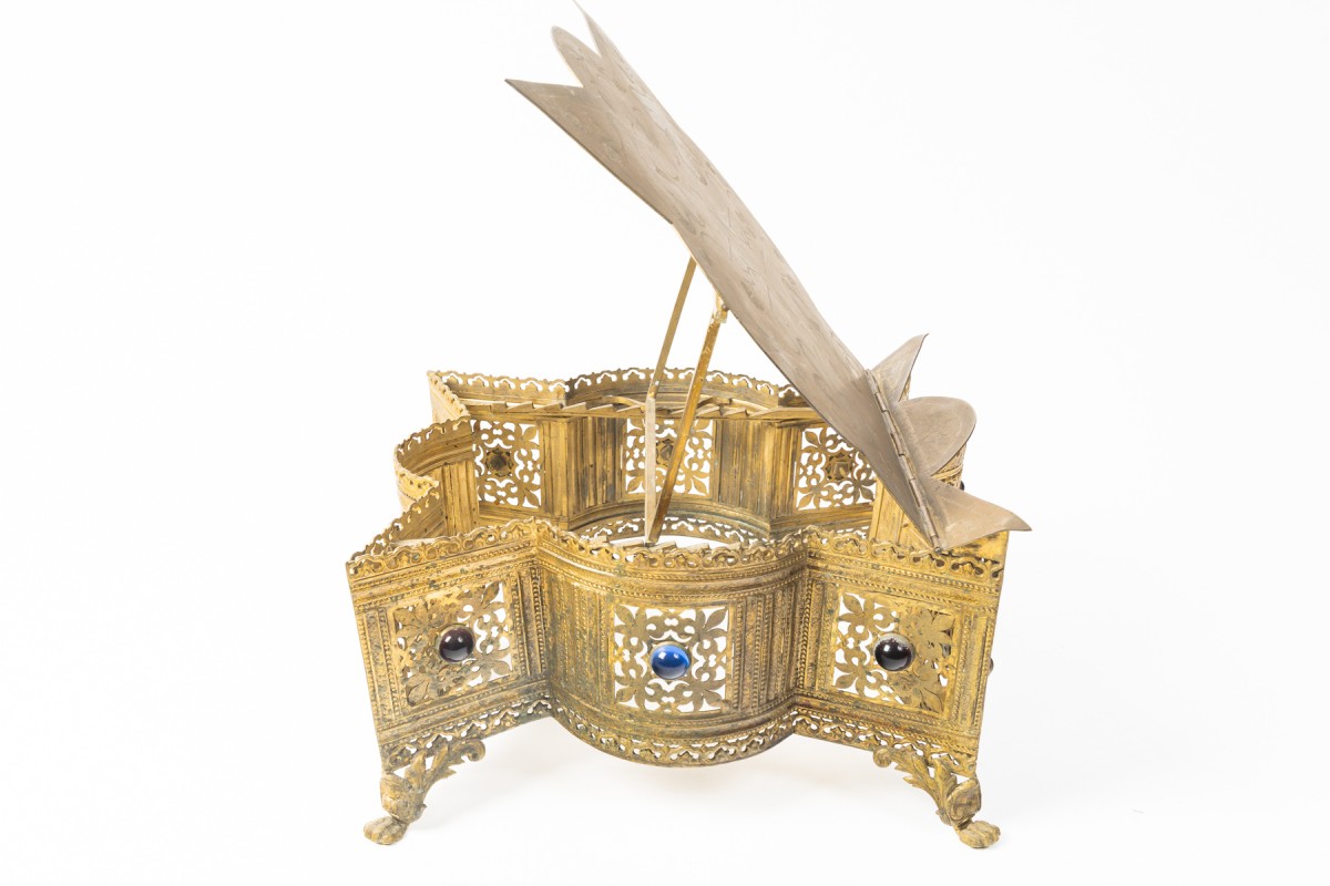 Pupitre d'autel en métal doré de forme héxafonale formant un thabor, de style néogothique, d'époque Napoléon III (1848-1870).