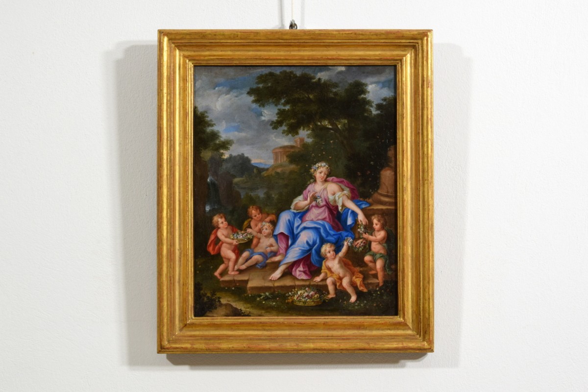 Les quatre tableaux, présentés dans des cadres en bois sculpté et doré de style XVIIIe, sont stylistiquement liés au cadre du peintre Noël Coypel (Paris, 25 décembre 1628 - Paris, 24 décembre 1707).