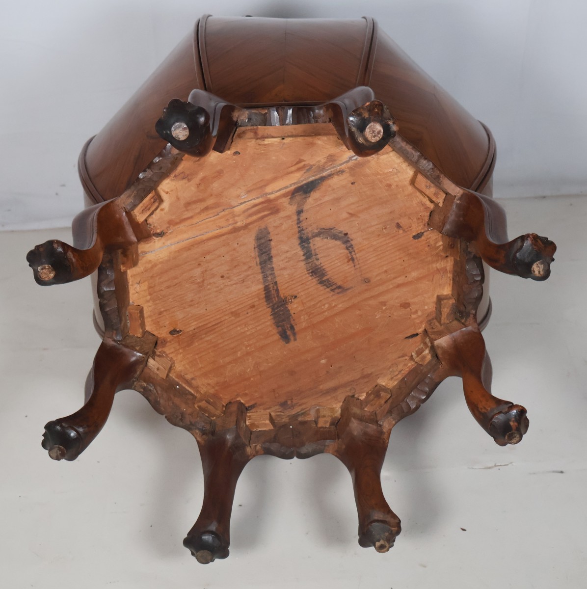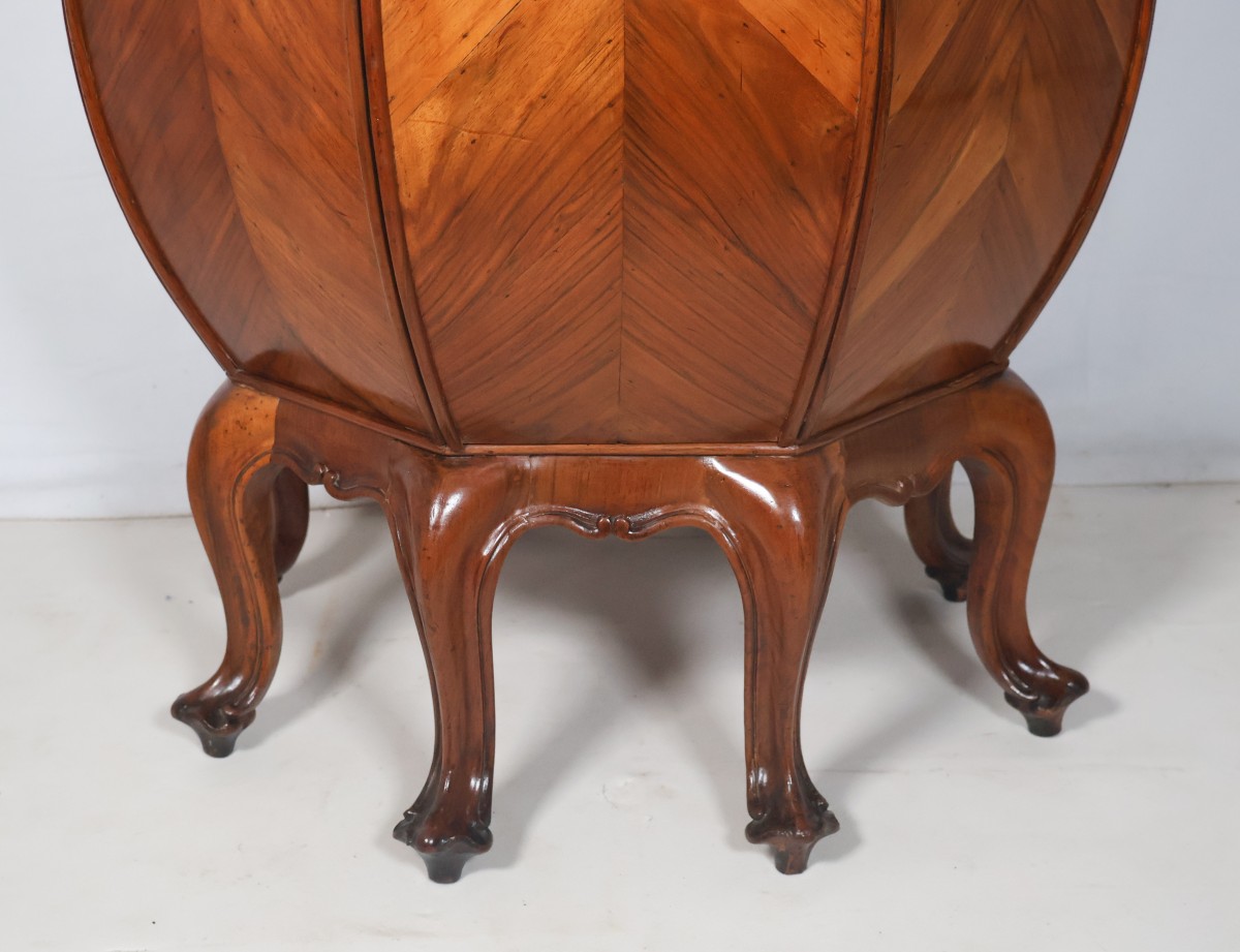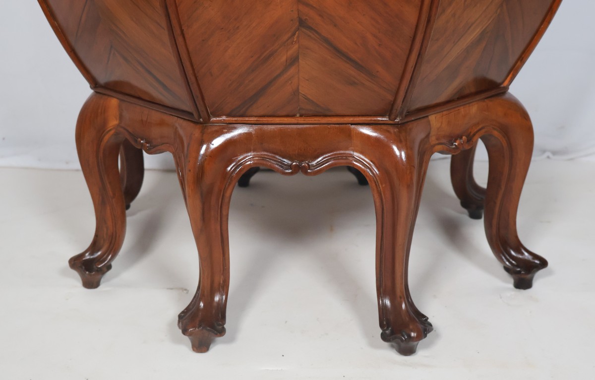 Il repose sur huit pieds en noyer massif, galbés et moulurés.