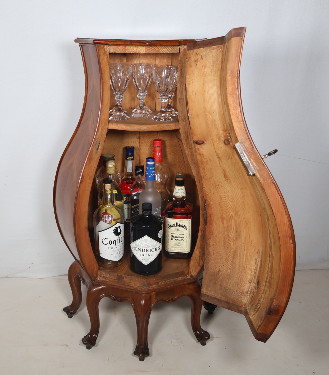Ouvre par une porte en façade à charnière décalée, découvrant une étagère intérieure.