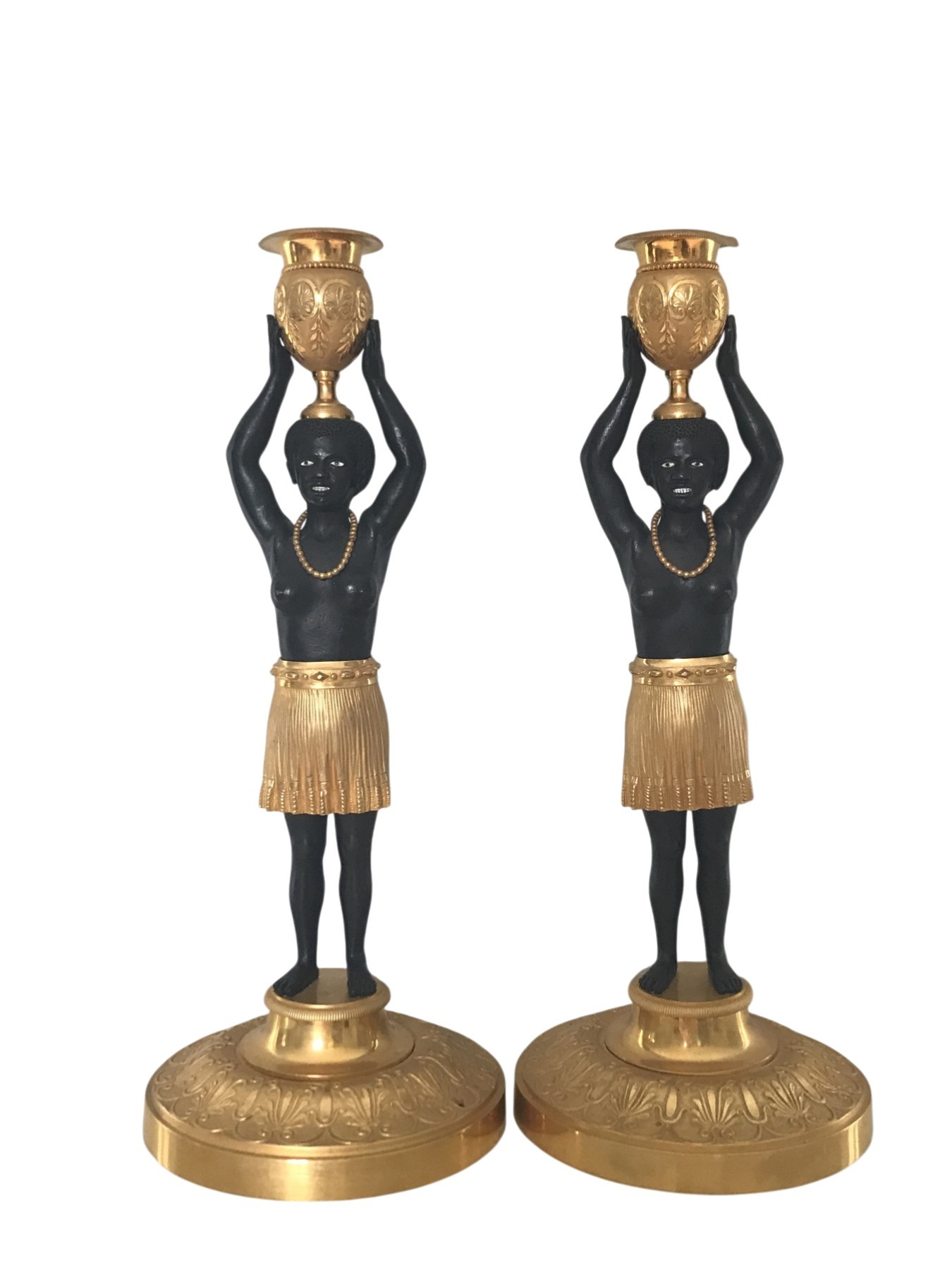 Retrouver le mobilier ou les objets d''art similaires à « Paire de bougeoirs "au Sauvage" d'époque Consulat » présenté par Malmaison Antiques, antiquaire à Boulogne Billancourt dans la catégorie Bougeoirs et Chandeliers Empire, Luminaires.
