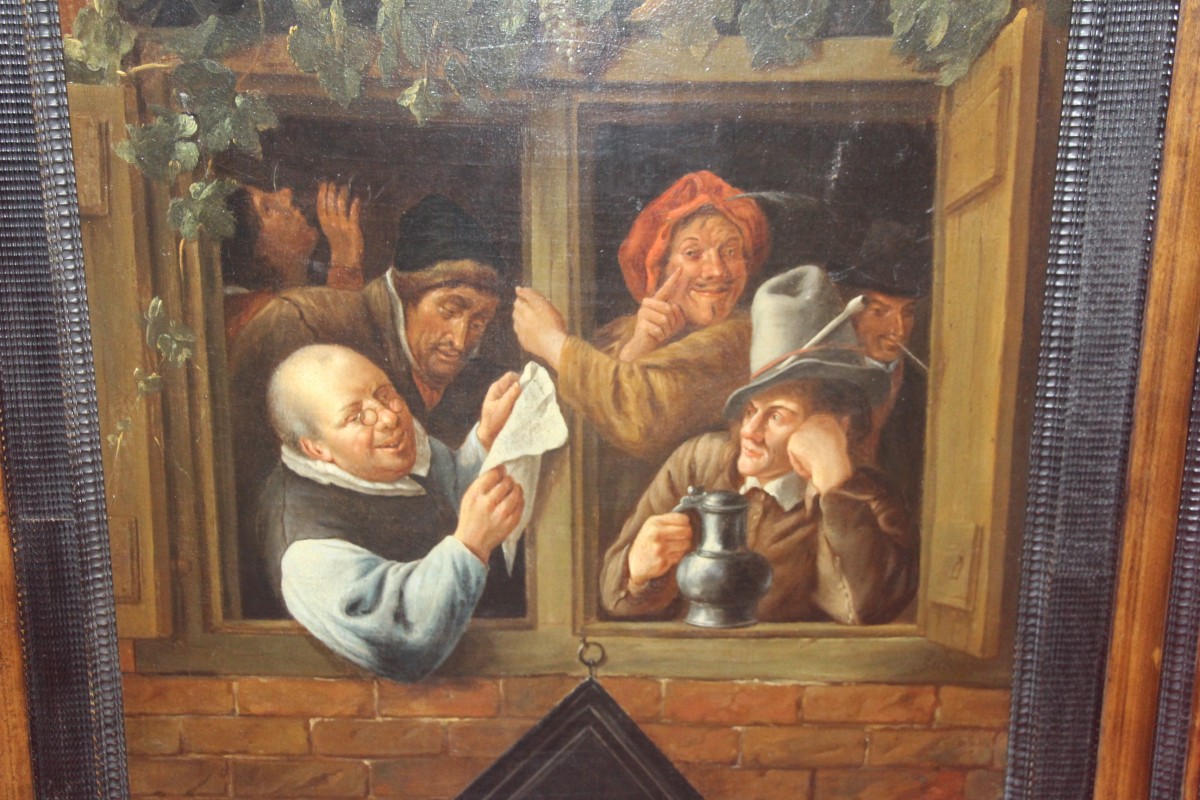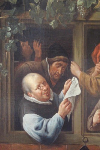 "Rhétoriciens à la fenêtre" d'après l'oeuvre de Jan Steen, dont l'originale est exposée au Philadelphia Museum of Art, (1658-1665), date du tableau.