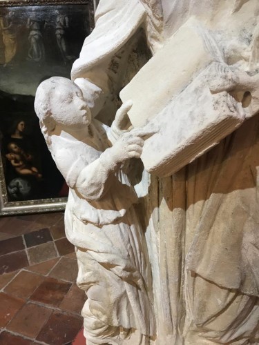 Notre sculpture en pierre calcaire de Saint-Mihiel, représente l'education de la Vierge.