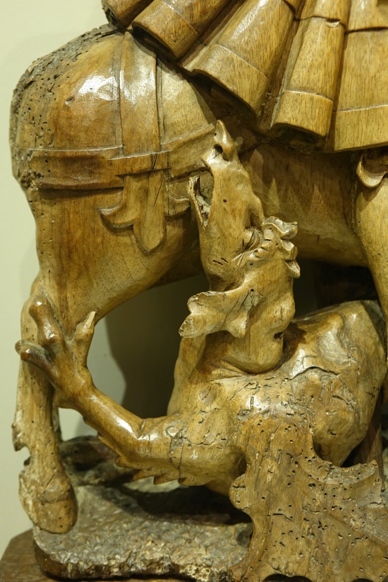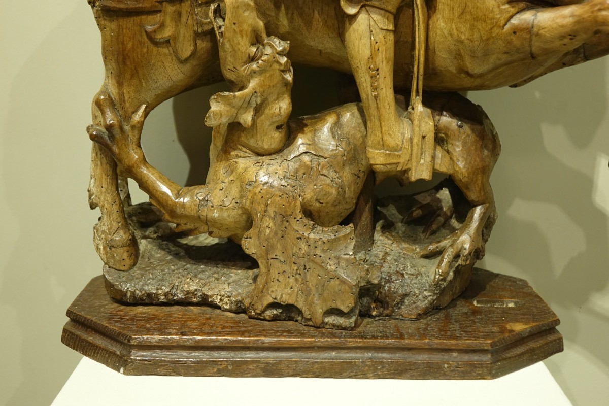 Retrouver le mobilier ou les objets d''art similaires à « Saint-Georges terrassant le dragon » présenté par La Crédence, antiquaire à Paris dans la catégorie Sculpture en Bois Renaissance, Sculpture.