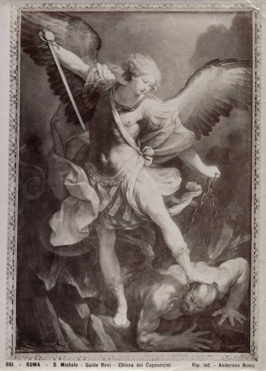 Guido Reni, Saint Michel Archange vainquant Satan 1635, huile sur soie, 293 × 202 cm Église Santa Maria della Concezione dei Cappuccini, Rome
