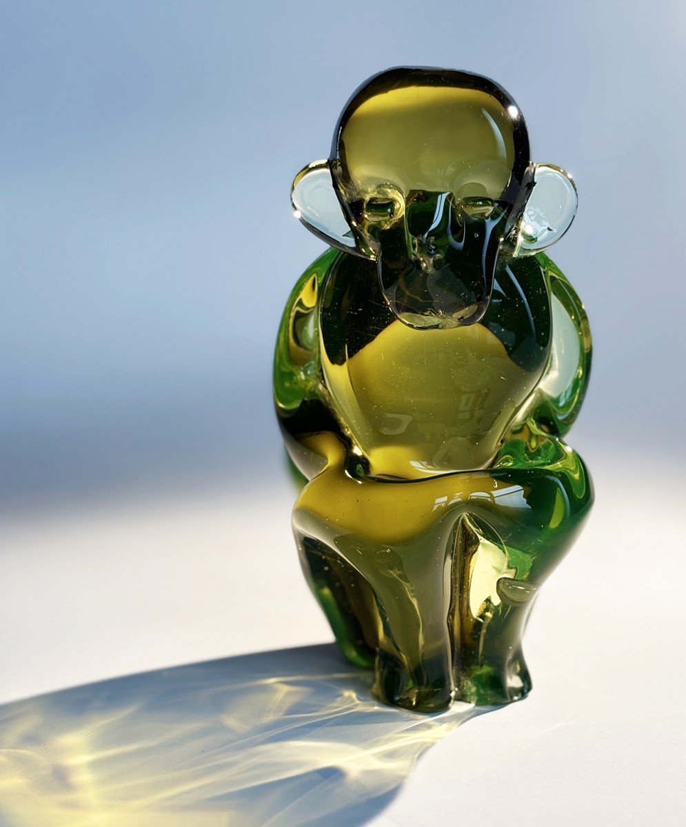 Sculpture en verre Singe
