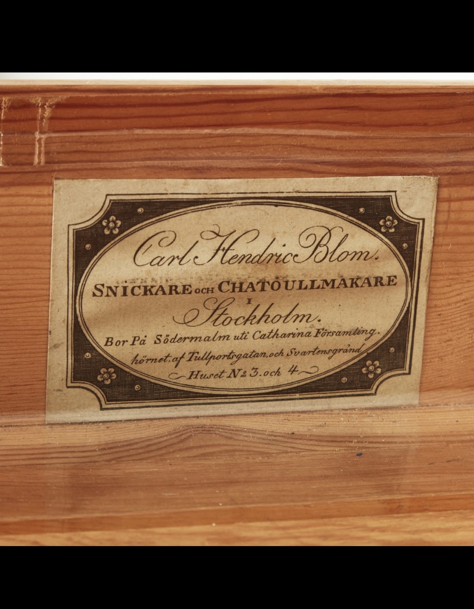 le meuble est signé par l'étiquette originale de l'atelier de C. H. Blom à Stockholm