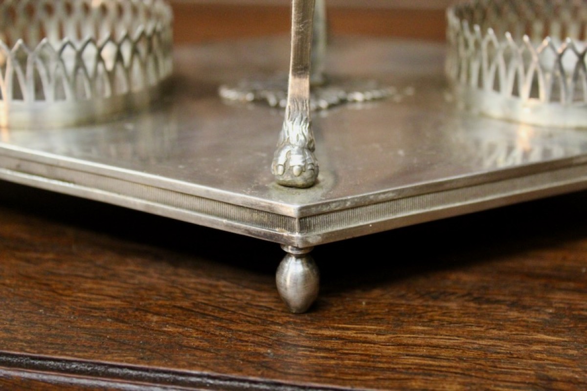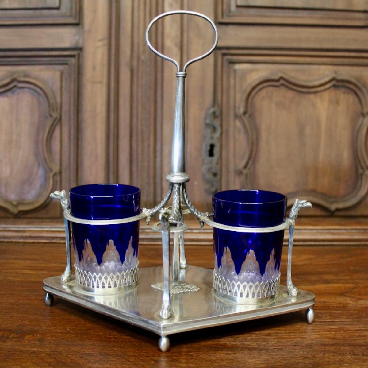 Huilier vinaigrier ,serviteur de table d'époque Empire en argent massif décor de têtes sur des pieds griffes.