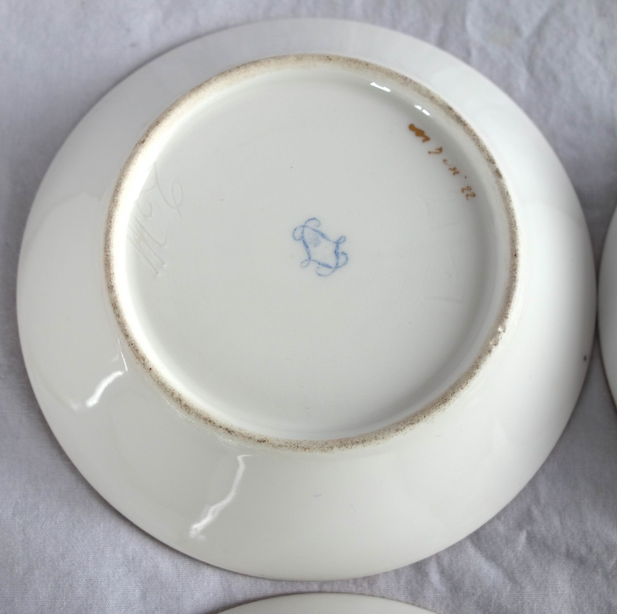Notre service semble être le décor original dont on connaît des variantes ultérieures avec une frise de fleurs polychromes :