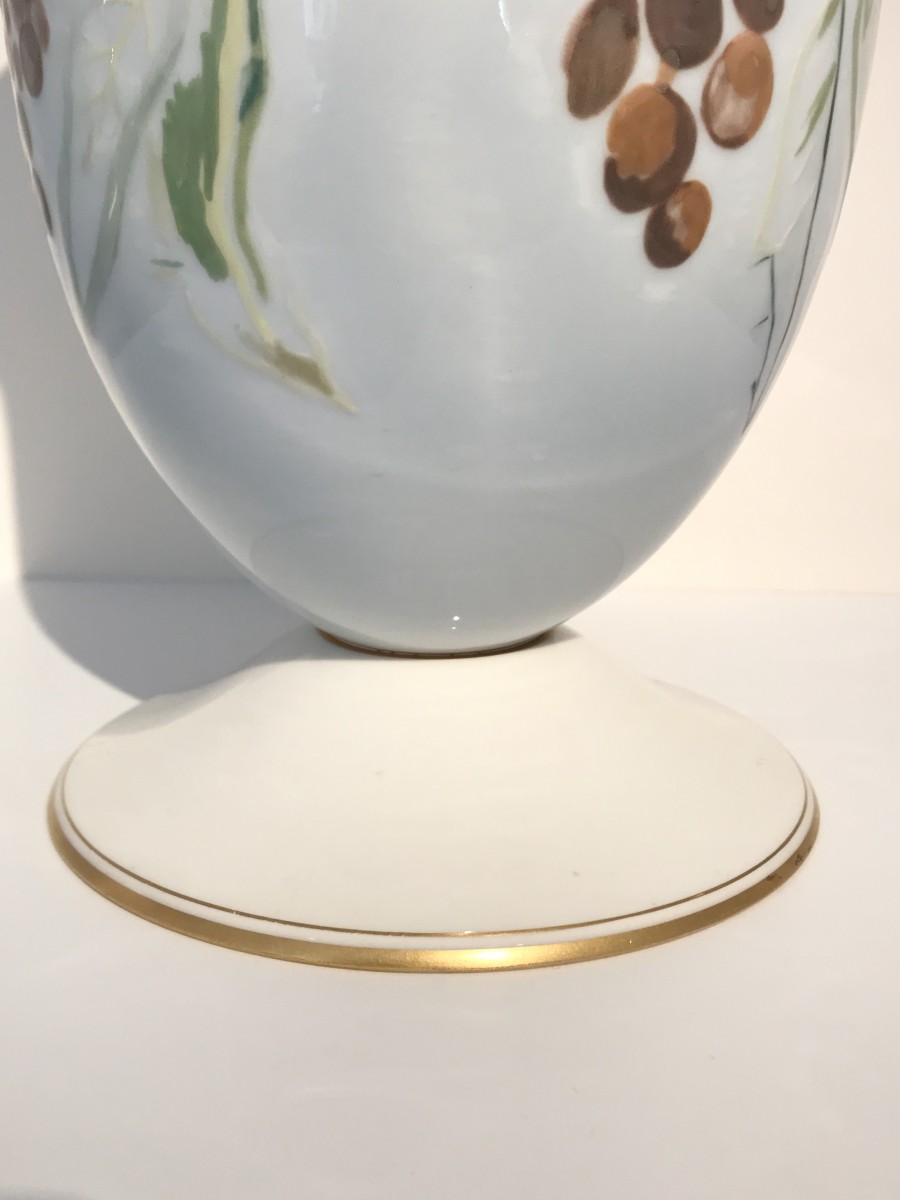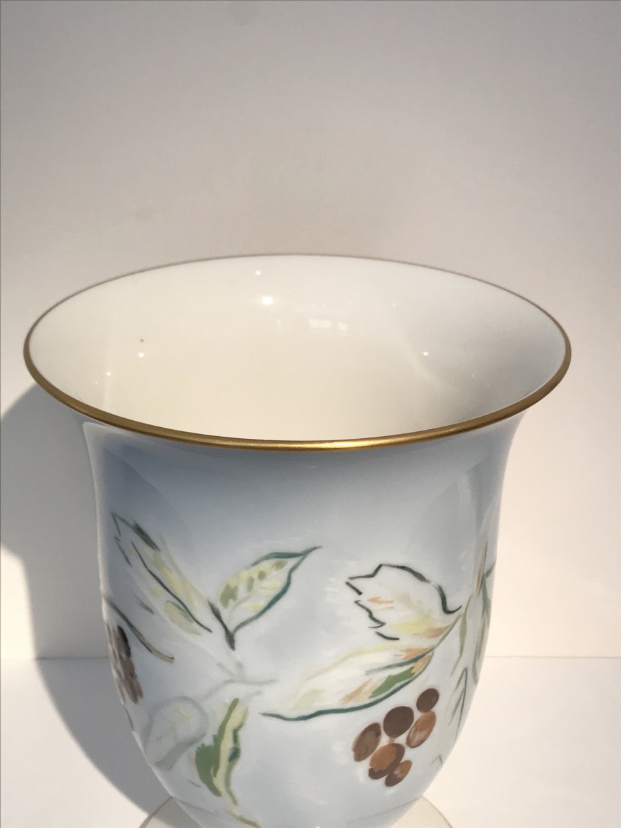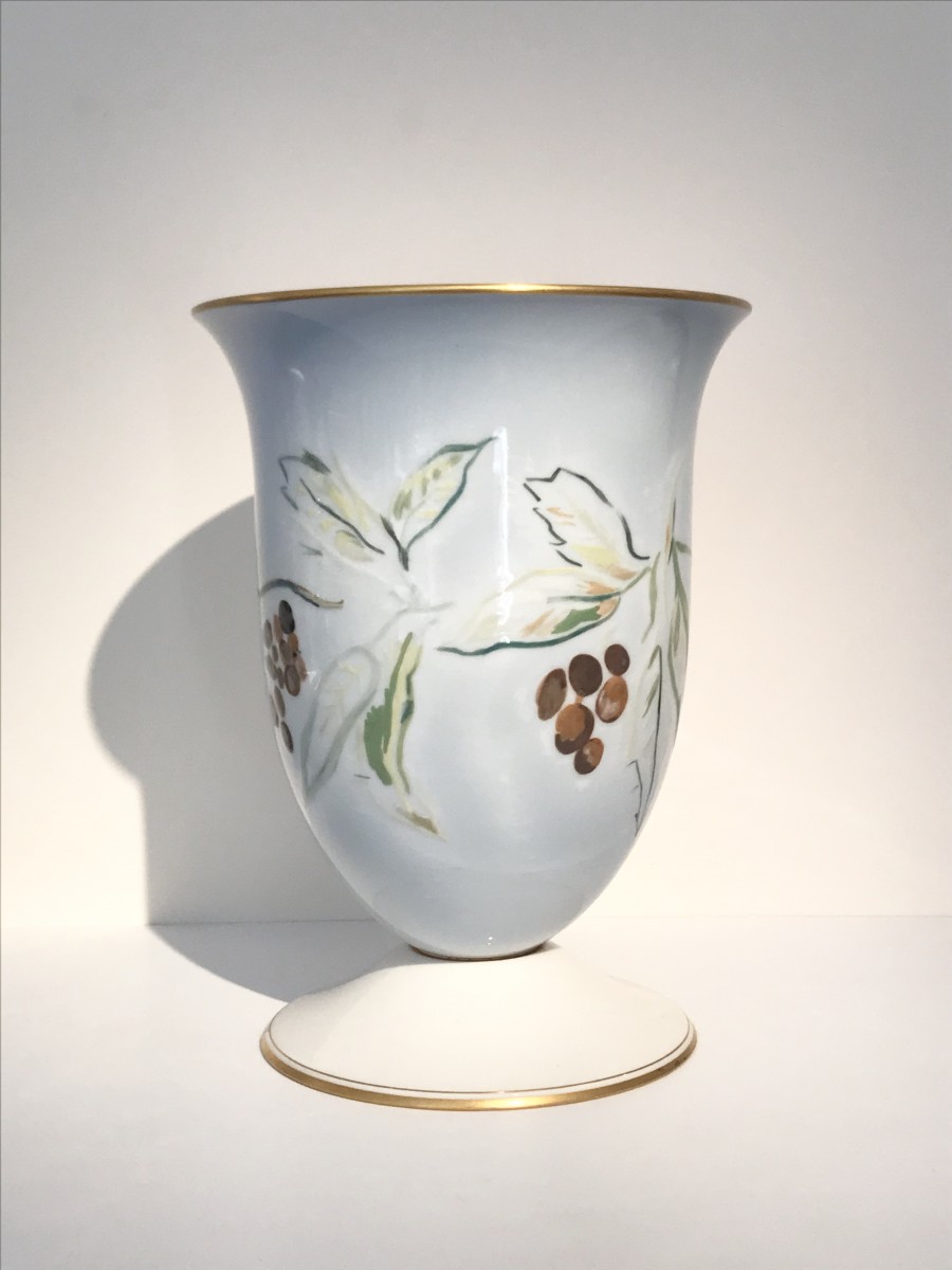 Vase "La Vigne" de forme tulipe en porcelaine émaillée à décor en léger relief en pâtes colorées sur fond bleu pâle.