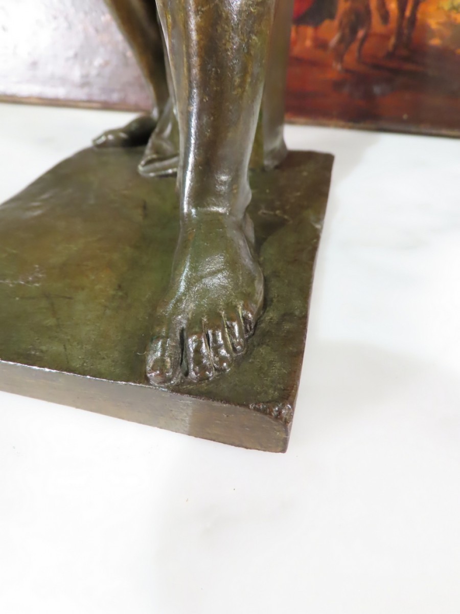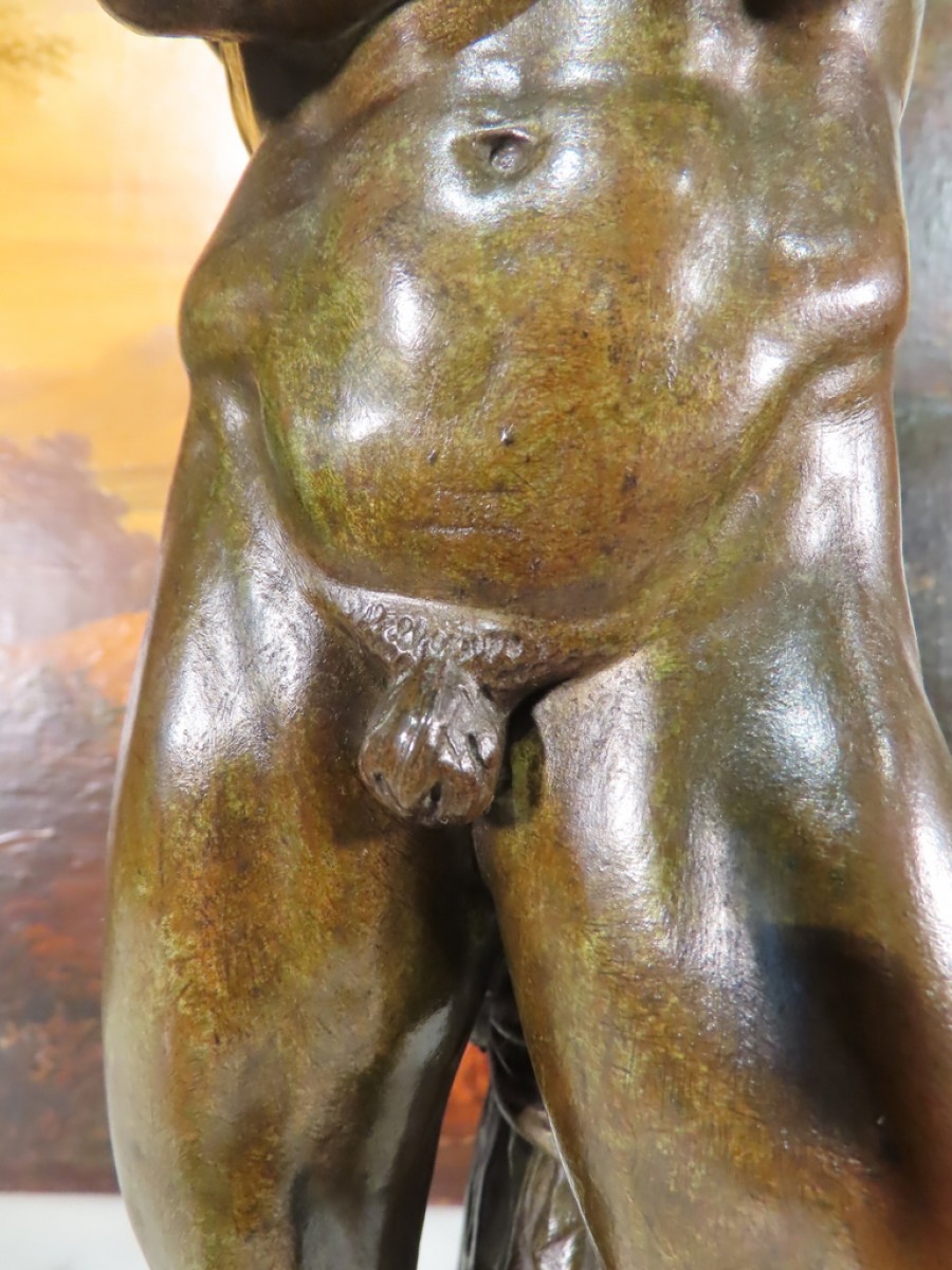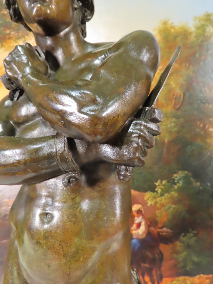 Bronze sculpture à patine brune verte représentant Spartacus nu, avec son glaive, venant de briser ses chaînes. Ce bronze porte la signature de Foyatier pour Denis Foyatier ( 1793 – 1863 ) Bronze d’époque XIX ème Siècle.