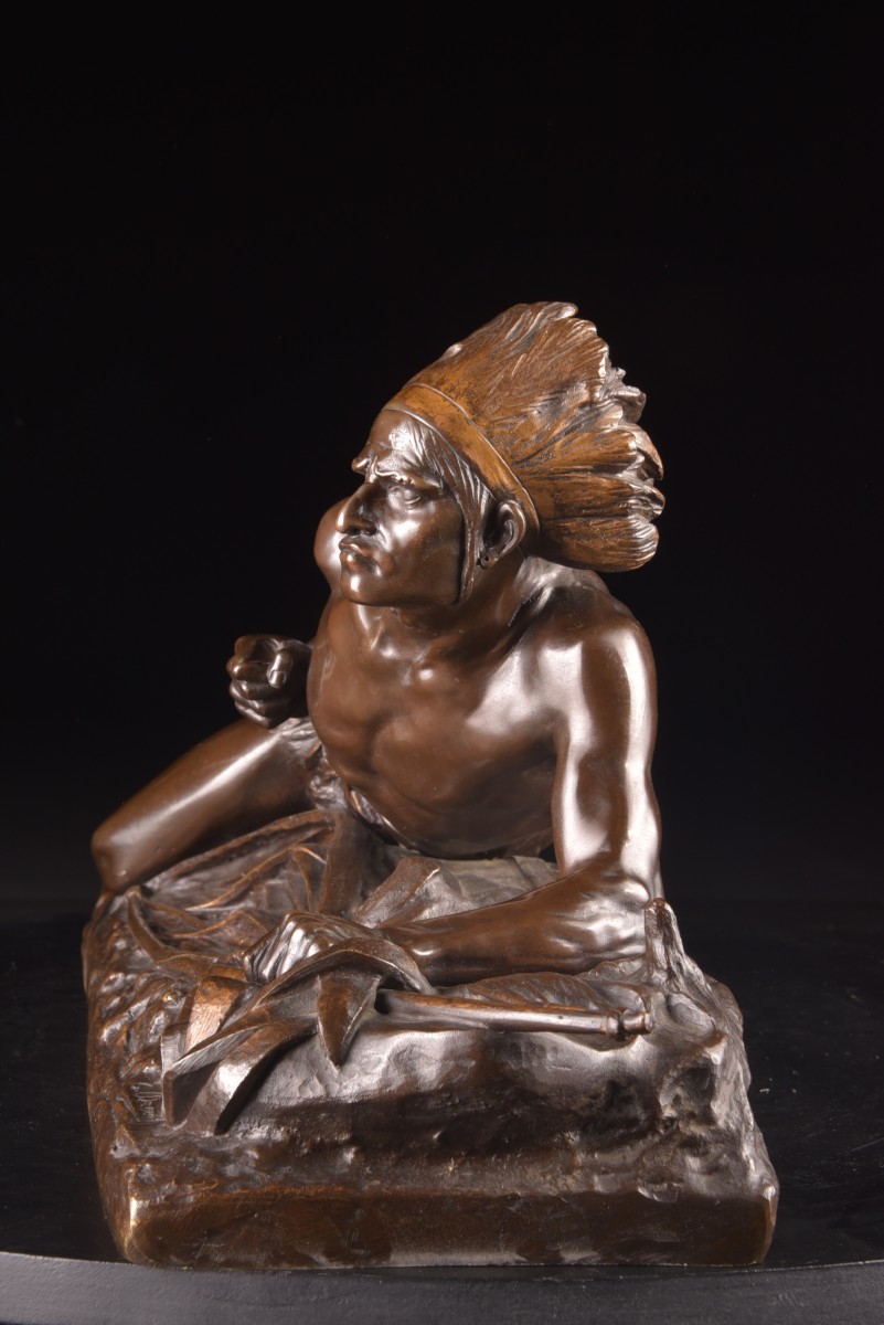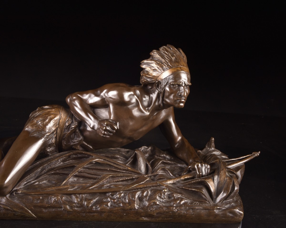 Retrouver le mobilier ou les objets d''art similaires à « Indien à l’affût - Edouard Drouot (1859–1945), fin XIXe siècle » présenté par Mora Antiques, antiquaire à Bilzen dans la catégorie Sculpture en Bronze Art nouveau, Sculpture.