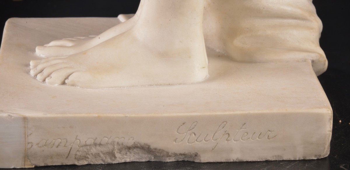 Retrouver le mobilier ou les objets d''art similaires à « Phryné, Pierre-Étienne Daniel Campagne (1851–1910) » présenté par Mora Antiques, antiquaire à Bilzen dans la catégorie Sculpture en Marbre Art nouveau, Sculpture.