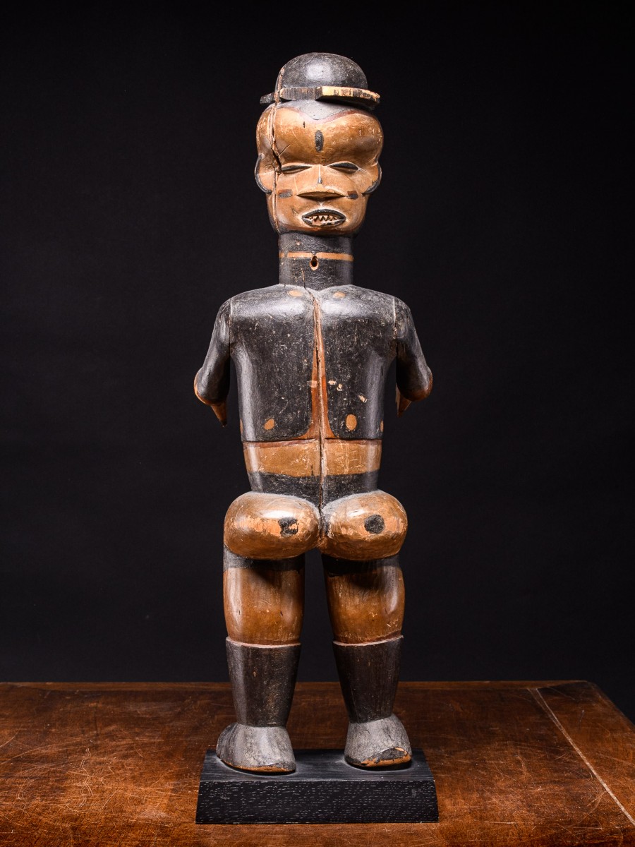 Cette statue élaborée de Janus est un exemple rare d'une figure autonome Ibibio rappelant un ancêtre bien défini dans ce qui semble être une tenue européenne. Les Ibibios attribuent des pouvoirs surnaturels à ces statues, qui sont également utilisées lors de séances de divination.