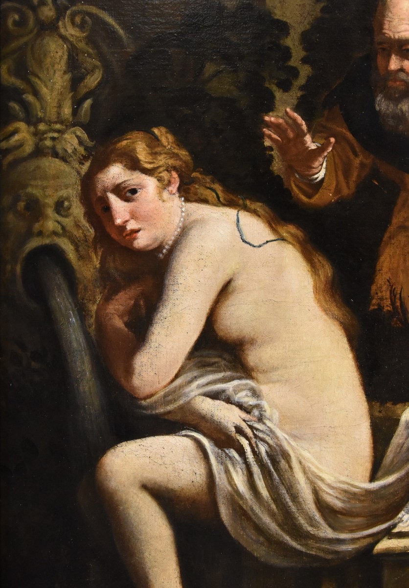 Retrouver le mobilier ou les objets d''art similaires à « Suzanne et les vieillards, Peintre actif à Rome au début du XVIIe siècle » présenté par Antichità Castelbarco, antiquaire à Riva del Garda dans la catégorie Tableaux XVIIe siècle Louis XIII, Tableaux et dessins.