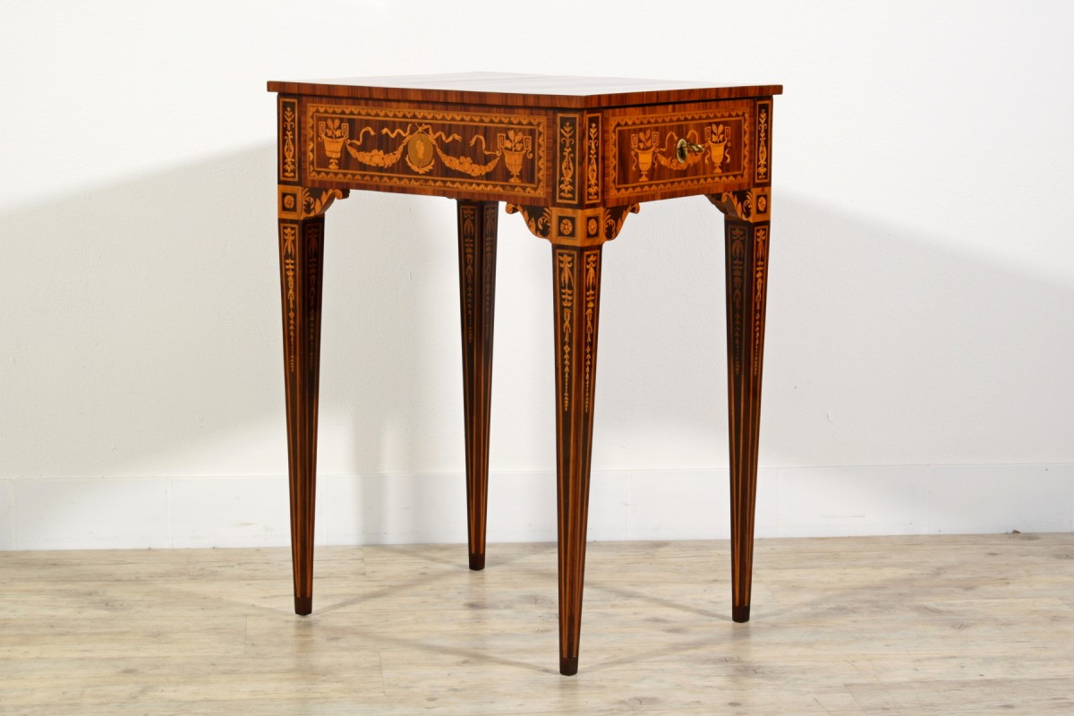 Retrouver le mobilier ou les objets d''art similaires à « Table de salon néoclassique en bois marqueté, Italie fin du XVIIIe siècle » présenté par Brozzetti Antichità, antiquaire à Cherasco dans la catégorie Table & Guéridon Louis XVI, Mobilier.
