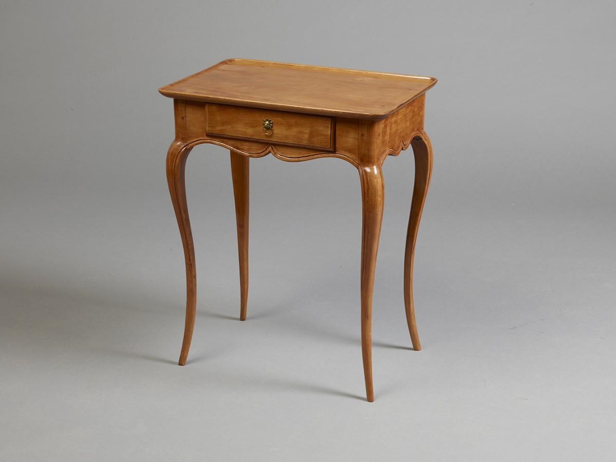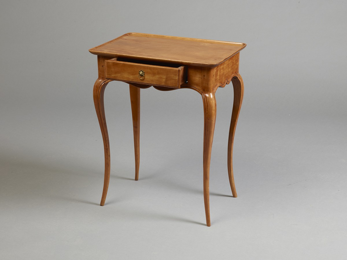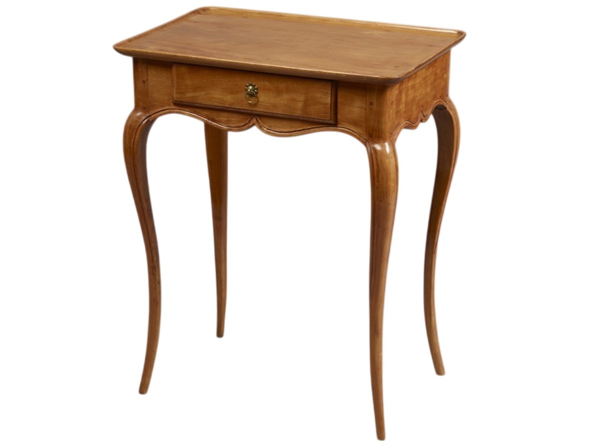Petite table à plateau creux dite "cabaret" en merisier finement mouluré, ouvrant par un tiroir en ceinture et reposant sur quatre pieds cambrés, époque L.XV