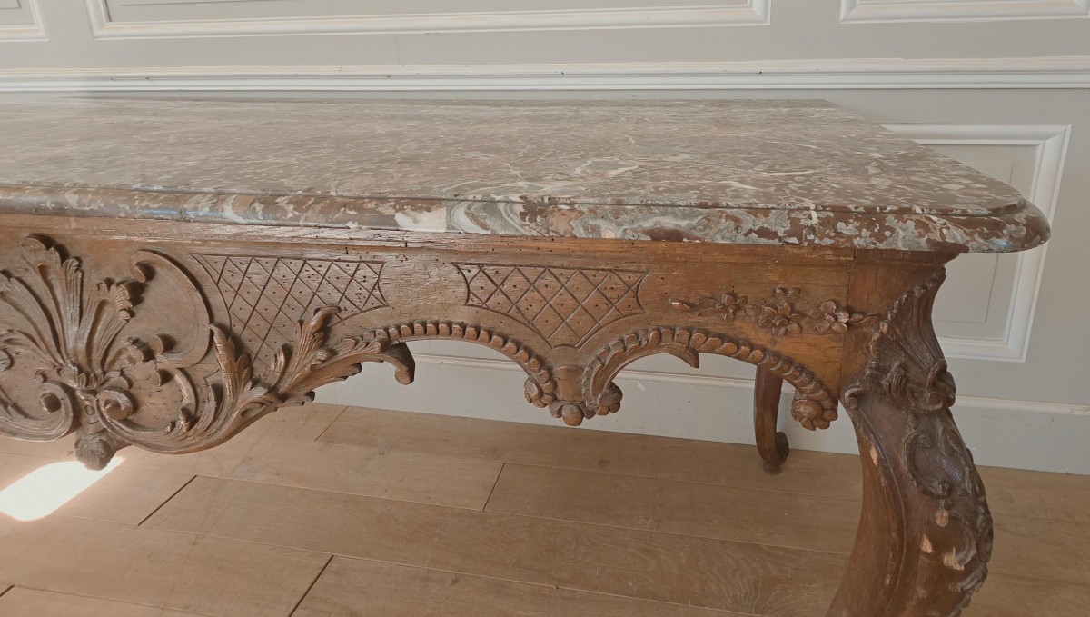 Retrouver le mobilier ou les objets d''art similaires à « Table à gibier d époque régence » présenté par La Jurande, antiquaire à Barlieu dans la catégorie Console Régence, Mobilier.