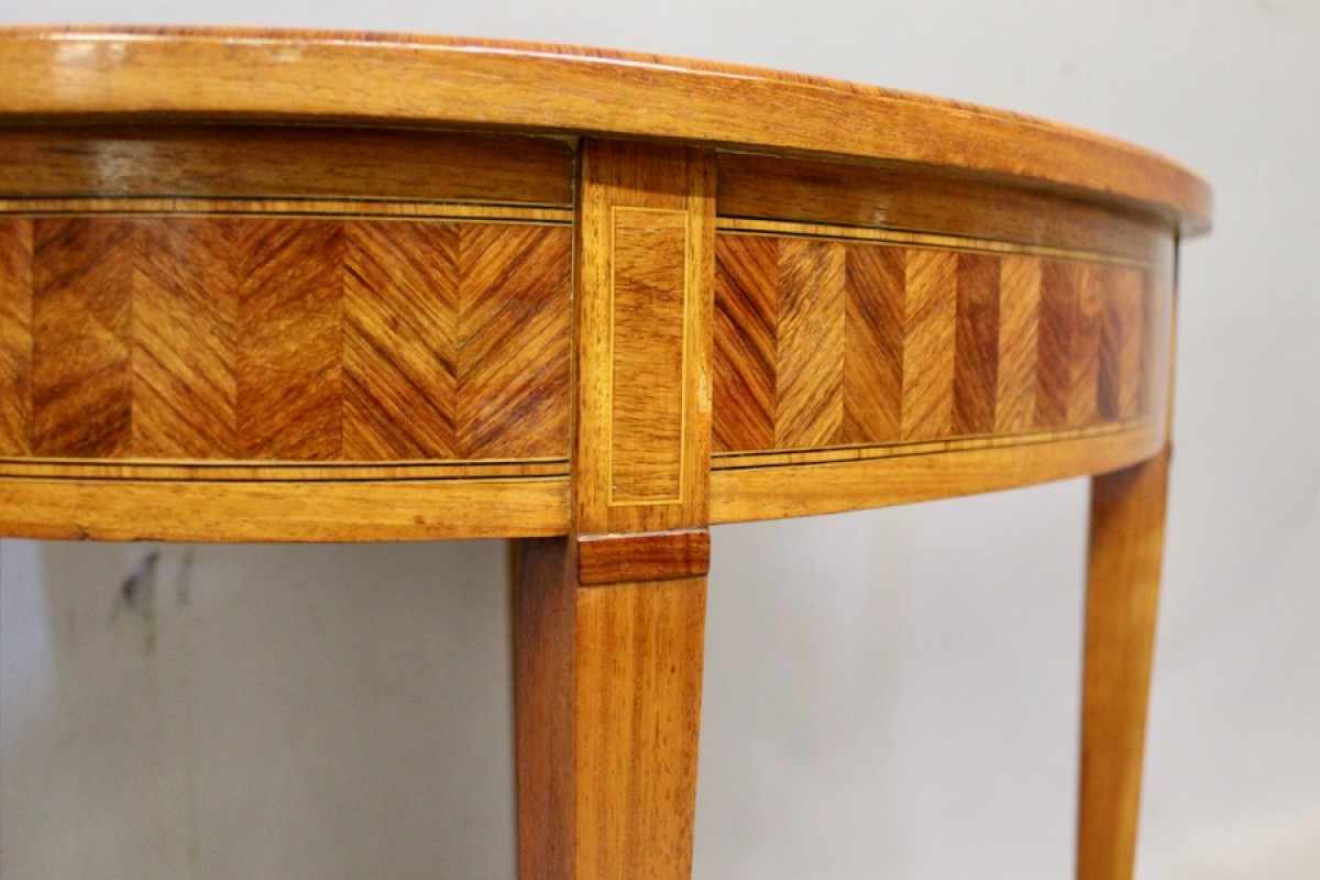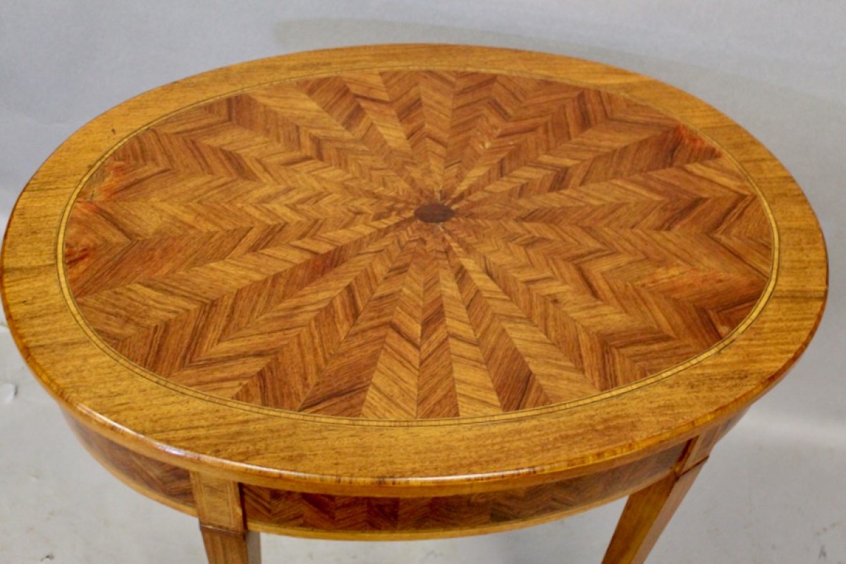 Marqueté en ceinture et belle marqueterie sur le plateau ovale.