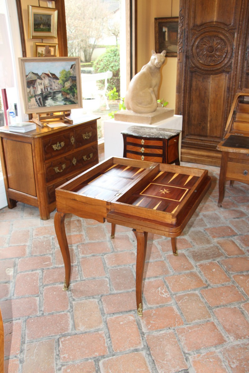 Retrouver le mobilier ou les objets d''art similaires à « Table à jeux à double plateau d’époque Louis XV » présenté par Galerie de Crécy, antiquaire à Voulangis dans la catégorie Table à Jeux Louis XV, Mobilier.
