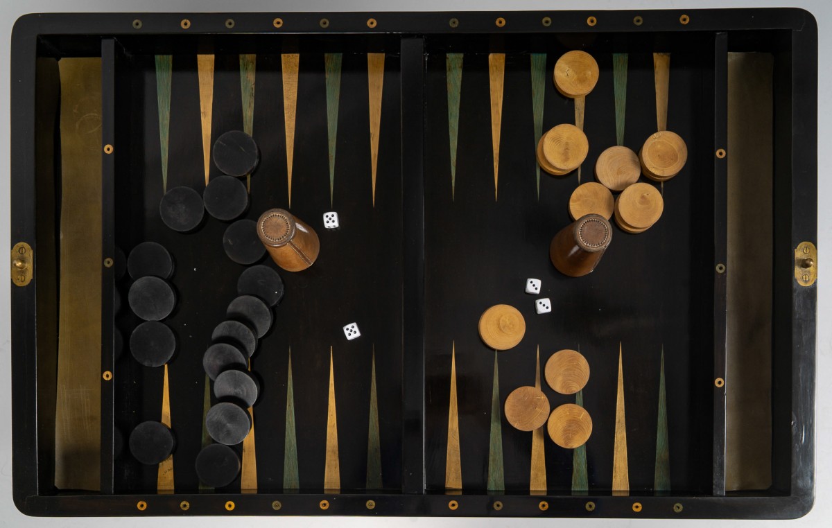 ... gobelets en cuir, quatre dés, ainsi que les pièces du jeu d’Échecs.