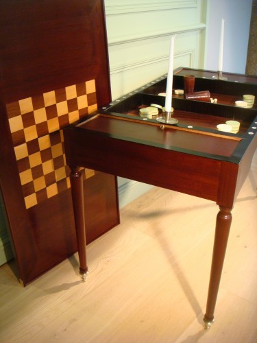 Retrouver le mobilier ou les objets d''art similaires à « Table à jeux Tric trac Directoire Estampillée de L. Martine » présenté par Antiquaires Balzeau & Brion, antiquaire à Vannes dans la catégorie Table à Jeux Directoire, Mobilier.