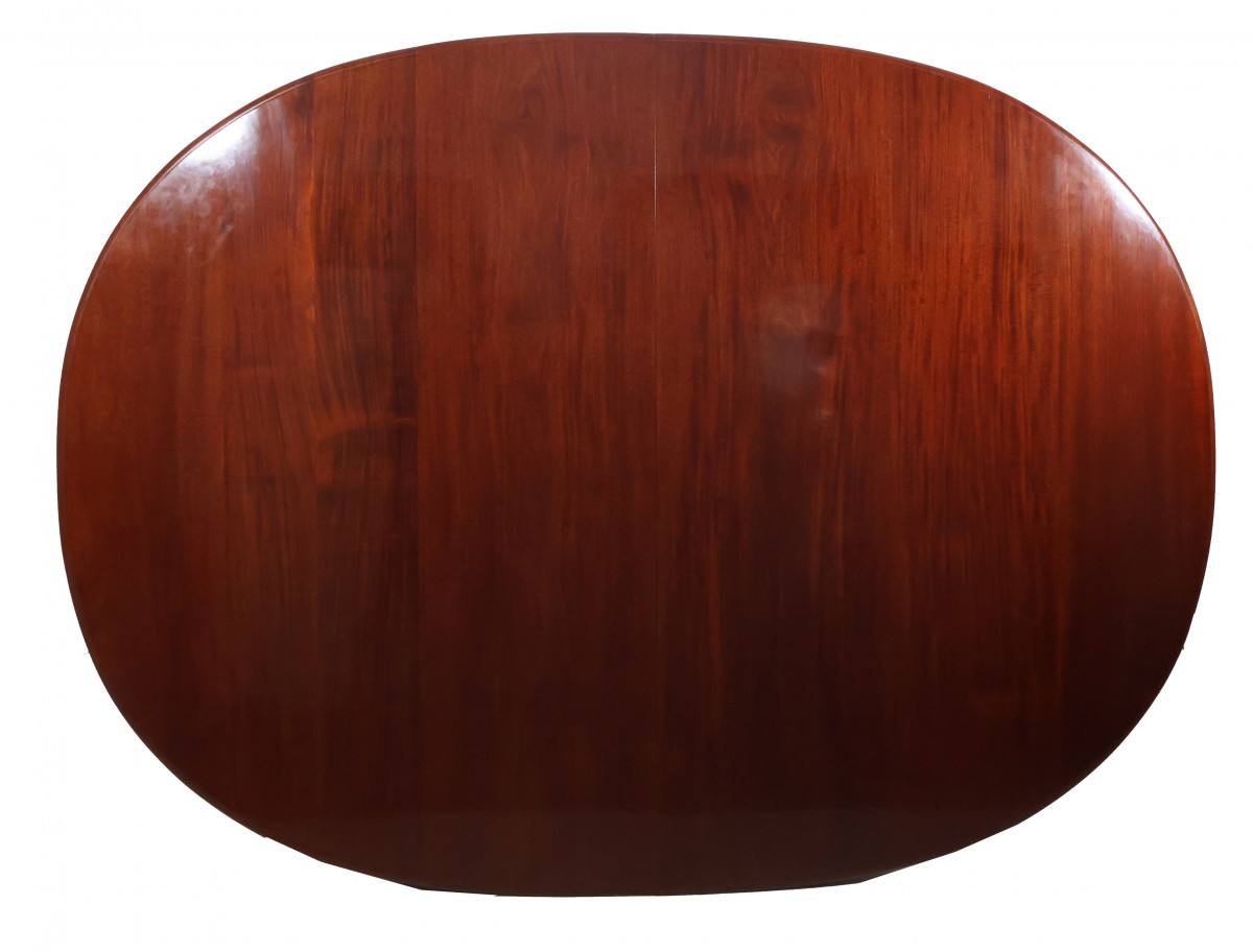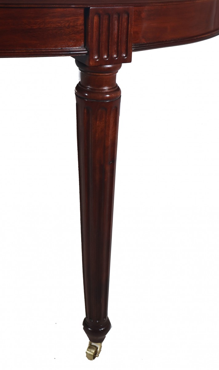 à bandeau, de forme ovale, en acajou massif reposant sur quatre pieds à cannelures se terminant par des roulettes