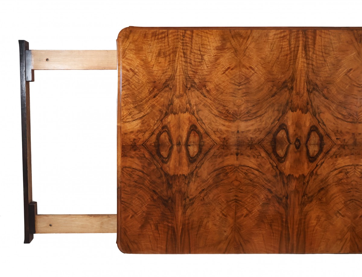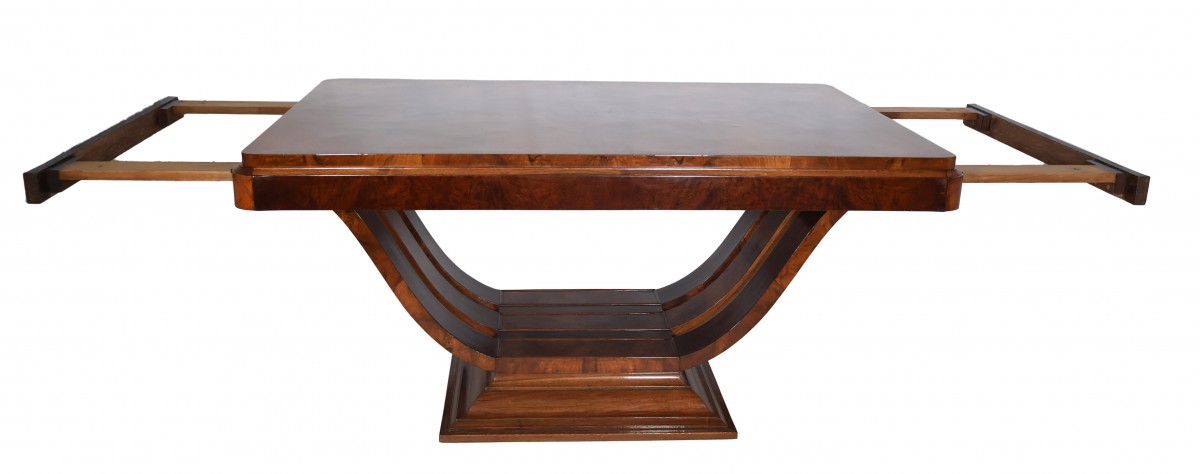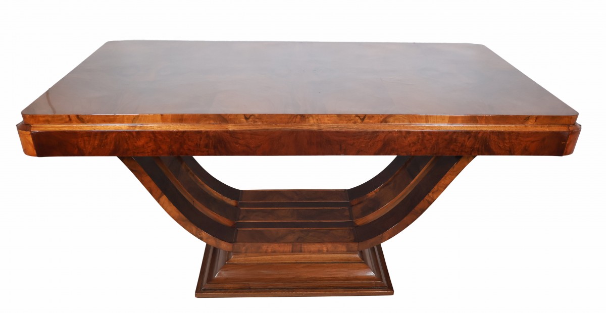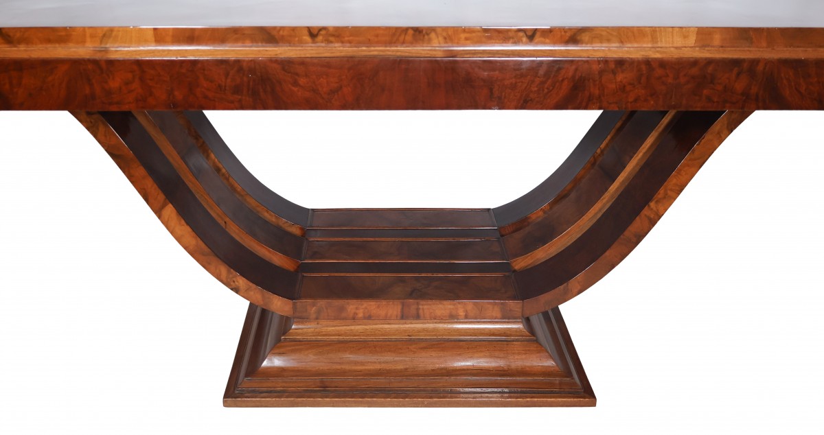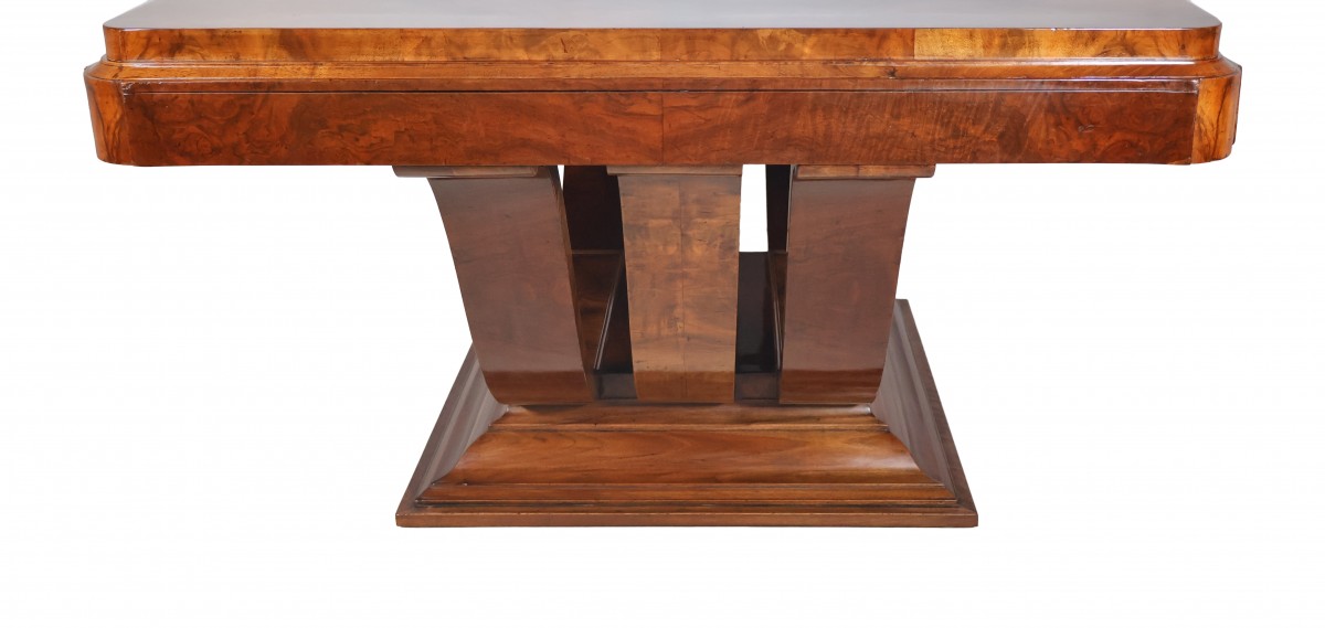 Retrouver le mobilier ou les objets d''art similaires à « Table de salle à manger en noyer époque Art Déco » présenté par Galerie Lauretta, antiquaire à Mandelieu-la-Napoule dans la catégorie Table & Guéridon Art Déco, Mobilier.
