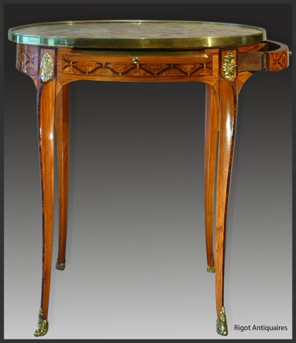 Retrouver le mobilier ou les objets d''art similaires à « Table de salon estampillée P. GARNIER d'époque Transition » présenté par Antiquités Rigot et Fils, antiquaire à Lyon dans la catégorie Table & Guéridon Transition, Mobilier.