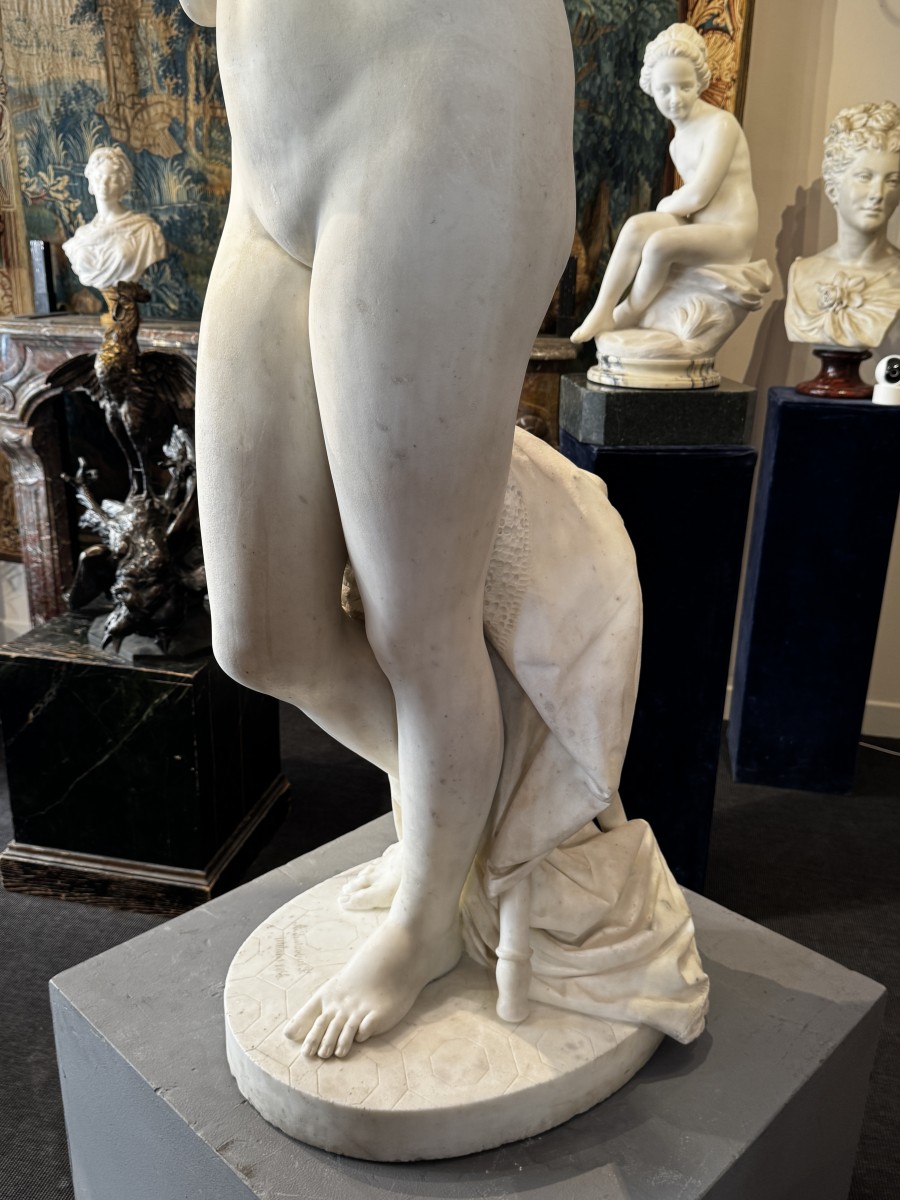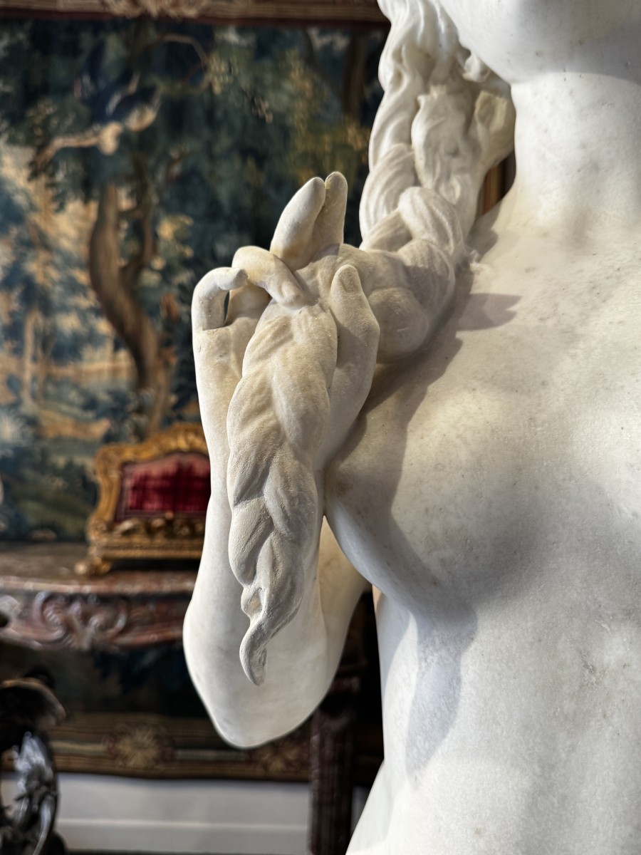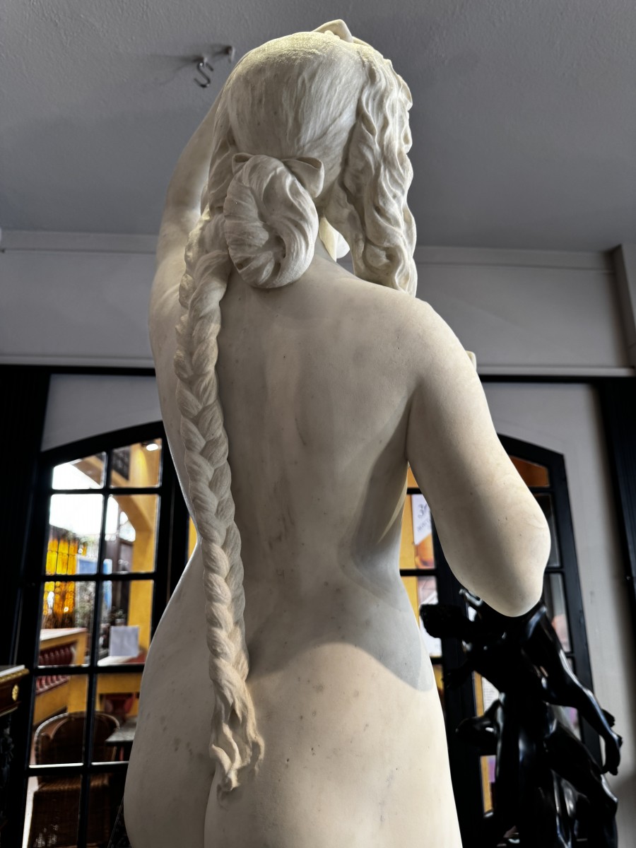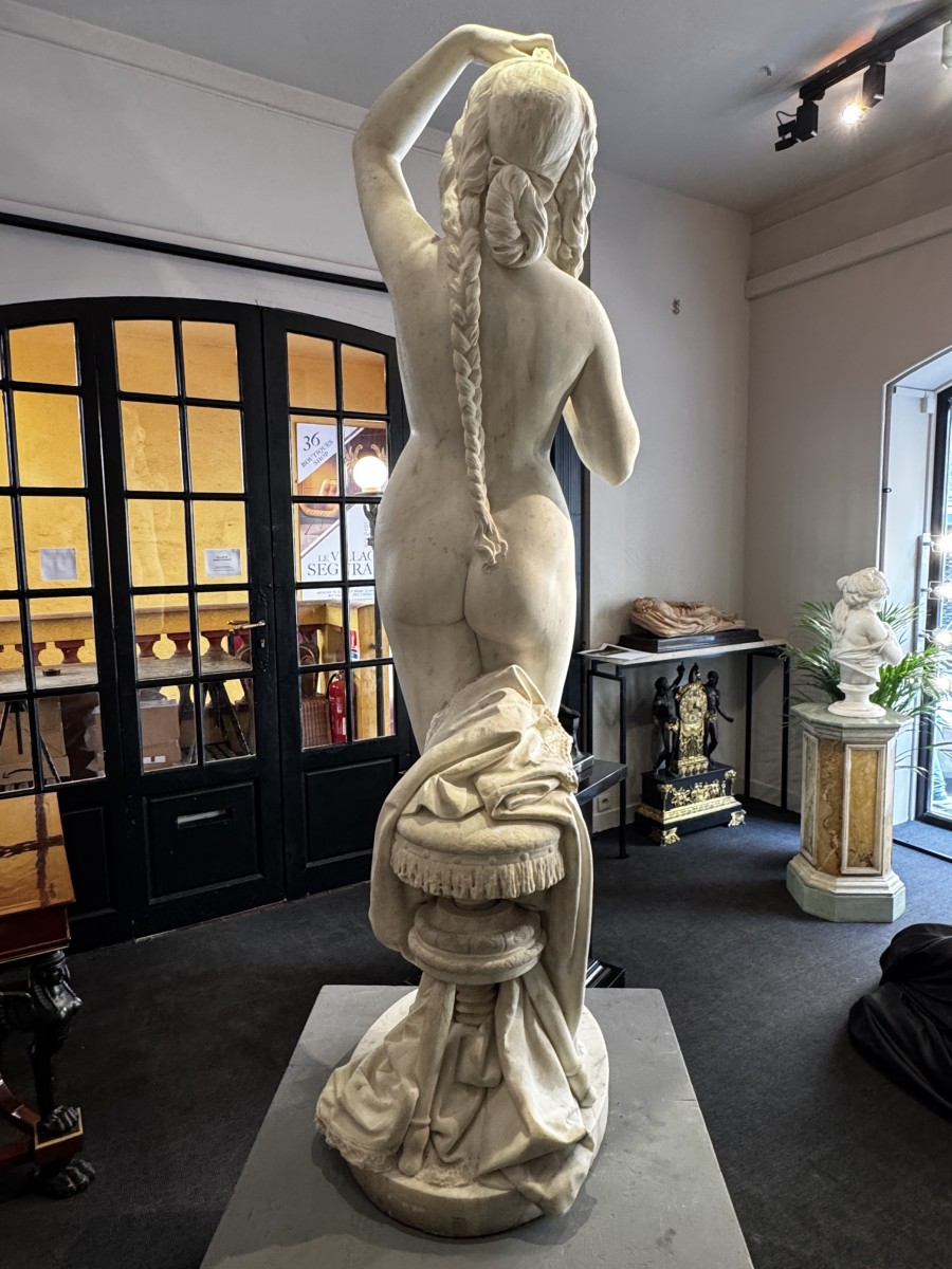 Grande sculpture " Le modèle " en marbre blac de Carrare.