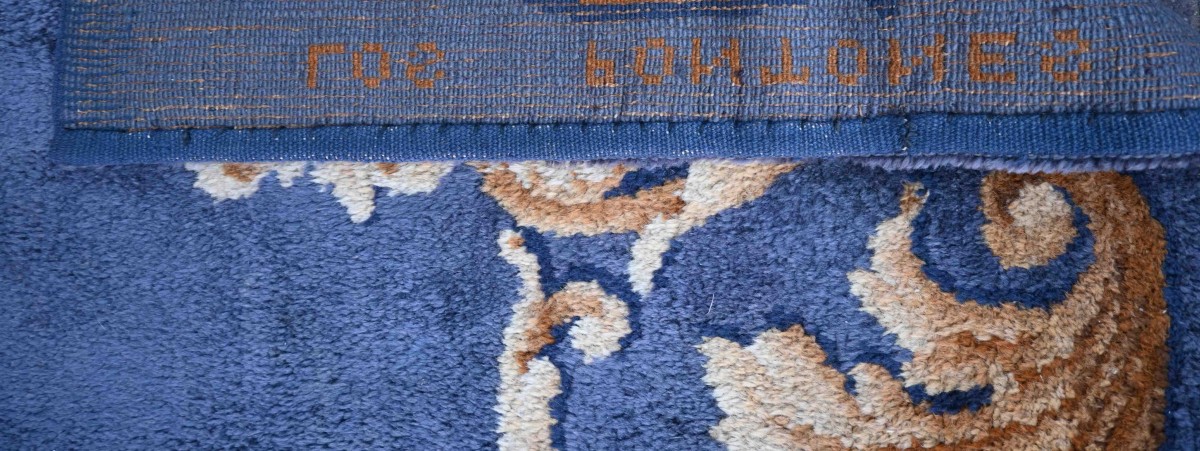 ... caractéristique des productions de la Savonnerie du début du XX? siècle. Le contraste entre le fond uni et les motifs richement travaillés confère à l’ensemble une grande lisibilité décorative ainsi qu’une forte présence visuelle.