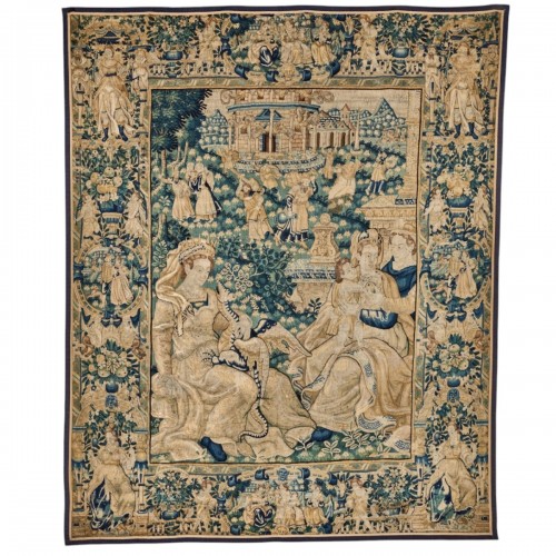 La tapisserie ancienne remonte à la plus haute Antiquité. Créé en Orient, l'art traditionnel est reproduit par les Romains et les Grecs. A partir du XIe siècle, les croisades l'introduisent en Occident. Facilement transportables, les tapisseries sont d'abord utilisées comme isolant thermique dans les différents voyages de la Cour. Elles permettent de protéger des courants d'airs, du froid et de l'humidité.