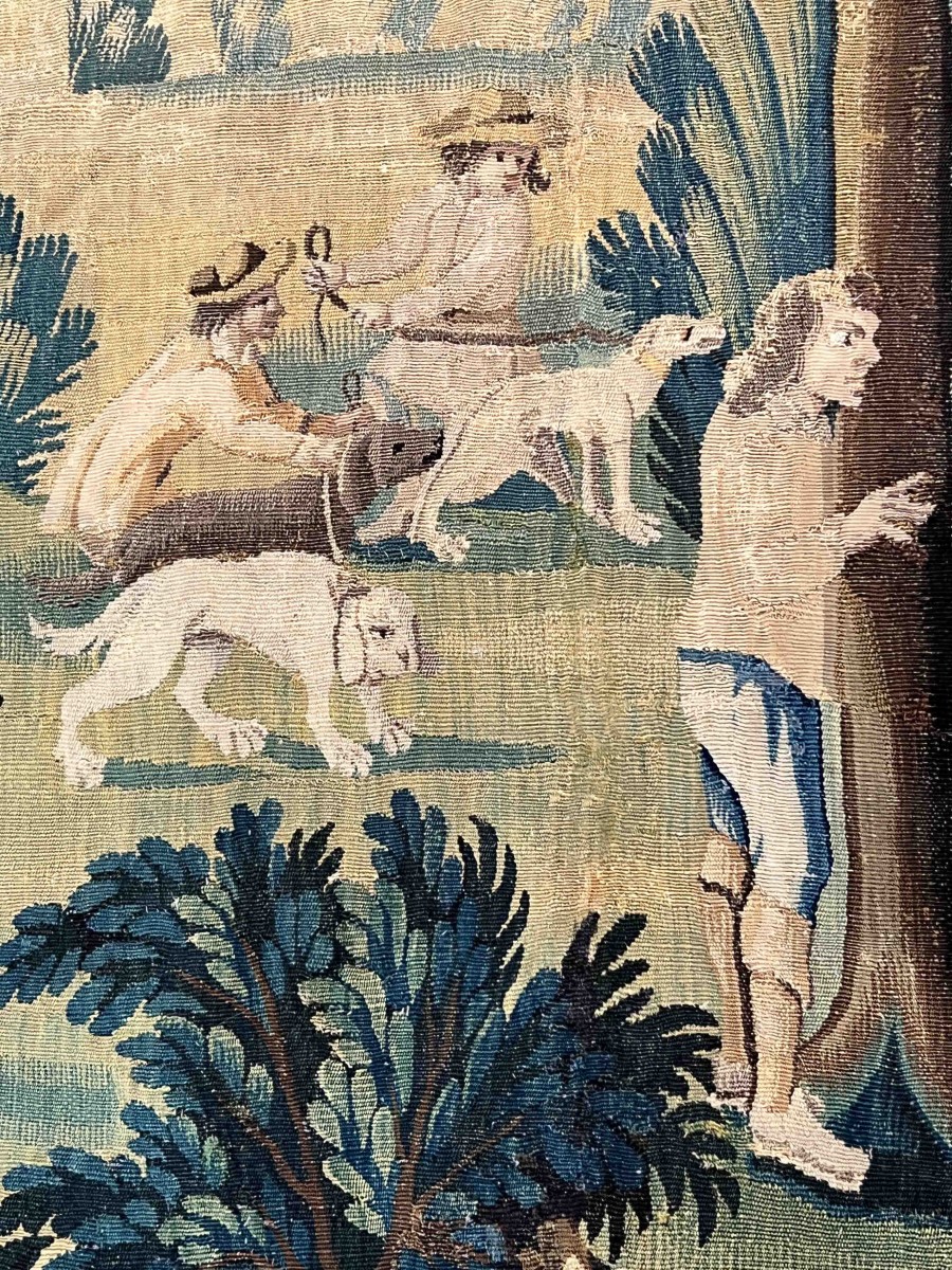 ... végétation, participent à l’action avec discrétion. L’ensemble évoque un divertissement aristocratique inspiré des plaisirs de la nature, thème récurrent dans l’art décoratif du XVIII? siècle.