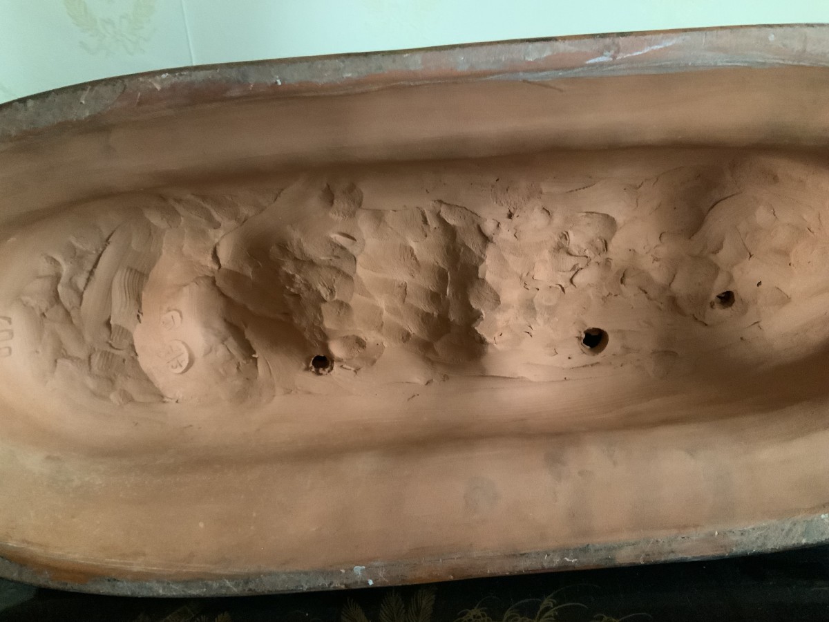 Notre groupe avec sa patine terre naturelle repose sur une terrasse en terre cuite à patine dorée (belle dorure ancienne ).