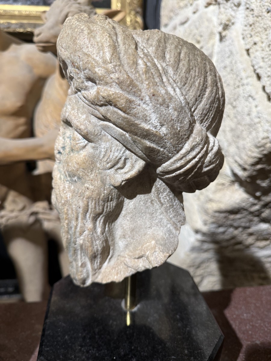 Cette tête date de Fin XIIe siècle, elle est en marbre ...