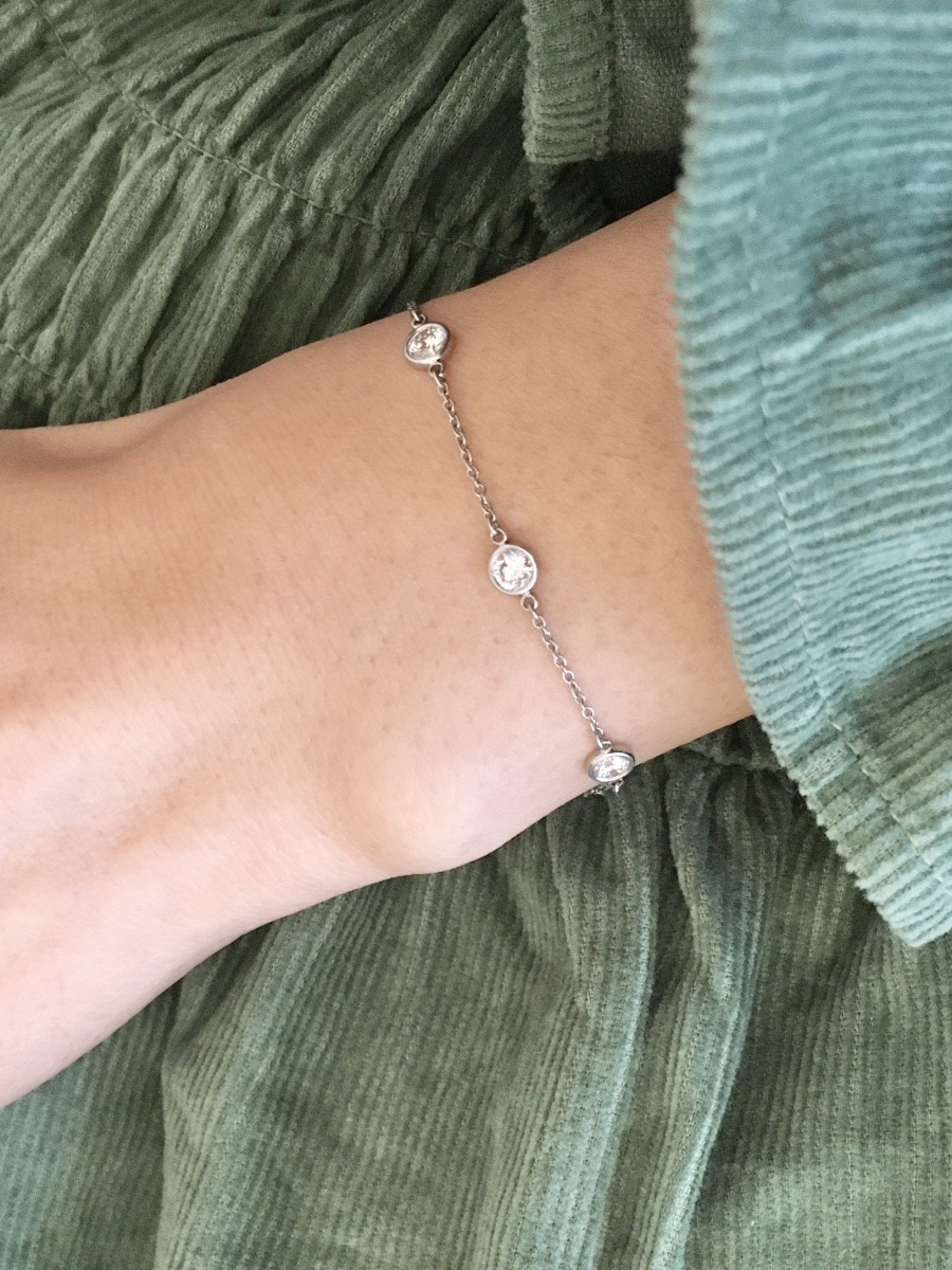 1,26 ct en sertis clos réunis par une chaînette à maillons ovales.