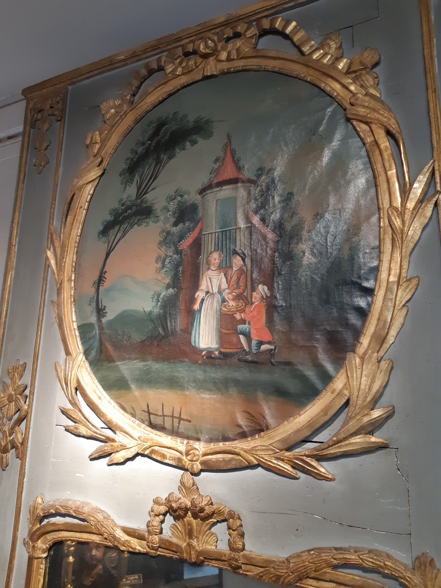 Il présente une peinture de charme inscrite dans un élégant médaillon ovale.