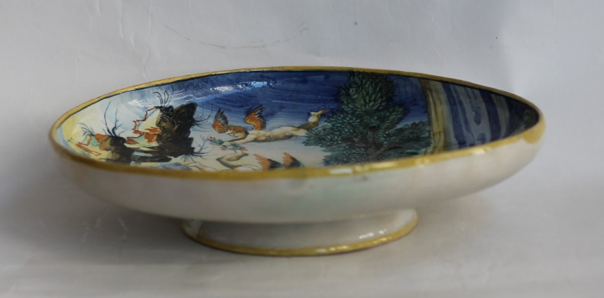 Coupe à décor polychrome a istoriato, représentant les amours de Mars et Vénus entourés de quatre amours.