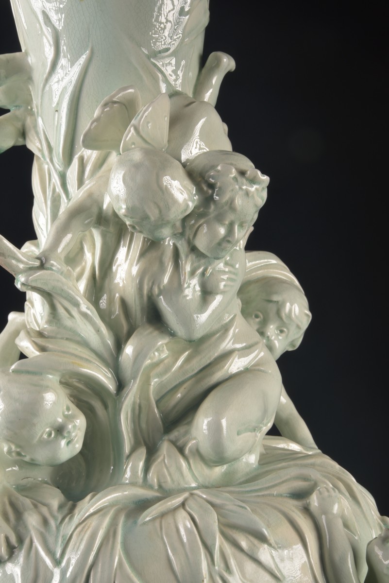 Une œuvre d’une grande virtuosité technique et artistique, emblématique du goût naturaliste et raffiné de la Belle Époque. Dimensions : H 90 cm × 34 cm