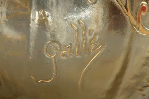 Après la mort d’Emile Gallé, en 1904, sa verrerie continue à produire jusqu’en 1936. Chaque pièce porte la signature de Gallé avec des centaines de variantes.