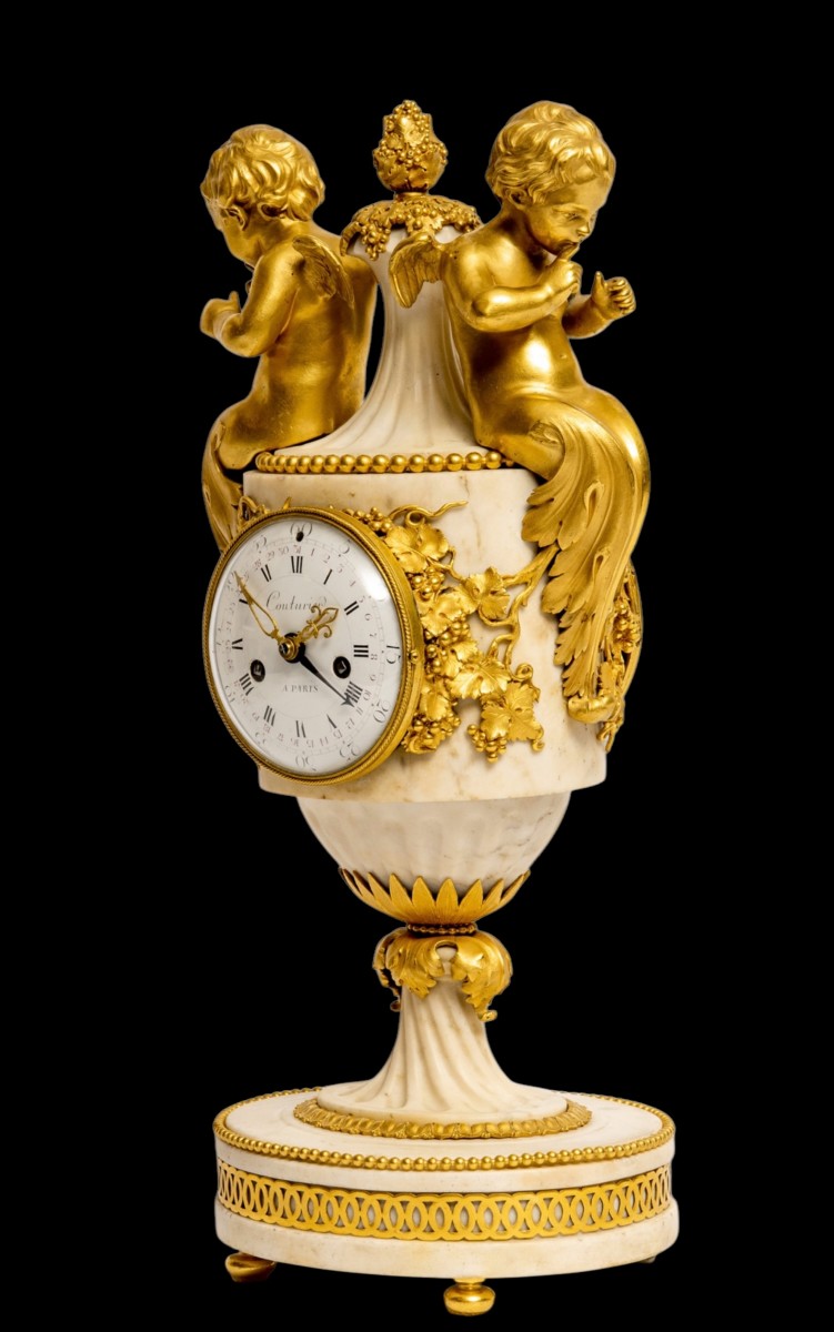 Retrouver le mobilier ou les objets d''art similaires à « Pendule vase Louis XVI par Couturier à Paris » présenté par Galerie Francesco De Rosa, antiquaire à Milan dans la catégorie Pendule Louis XVI, Horlogerie.
