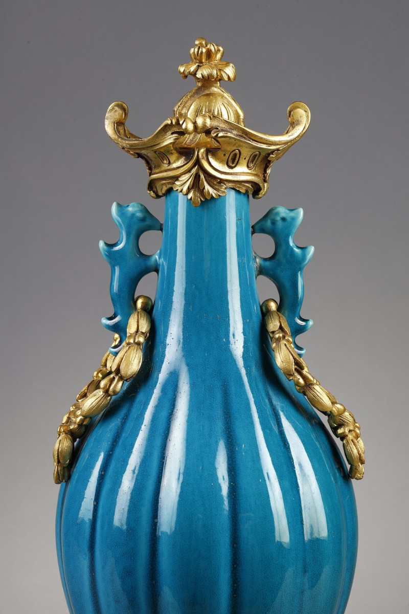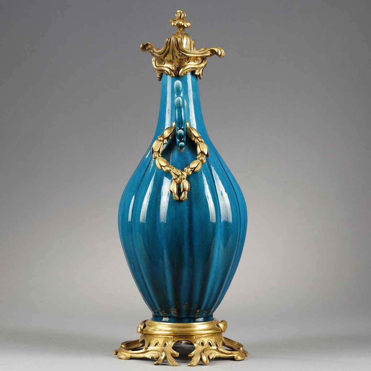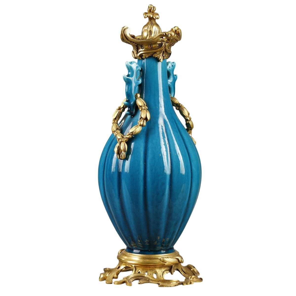Notre vase est un très beau travail du début du XIX siècle d'après un modèle de Jean Claude Chambellan Duplessis, en porcelaine et bronze doré aux très belles ciselures.