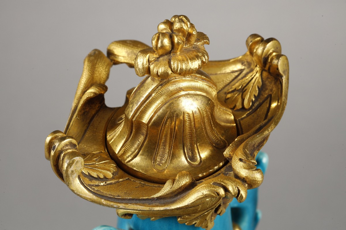 Le col et le couvercle sont moulés, ajourés et ornés à décor d'acanthe et sommé d'une graine.