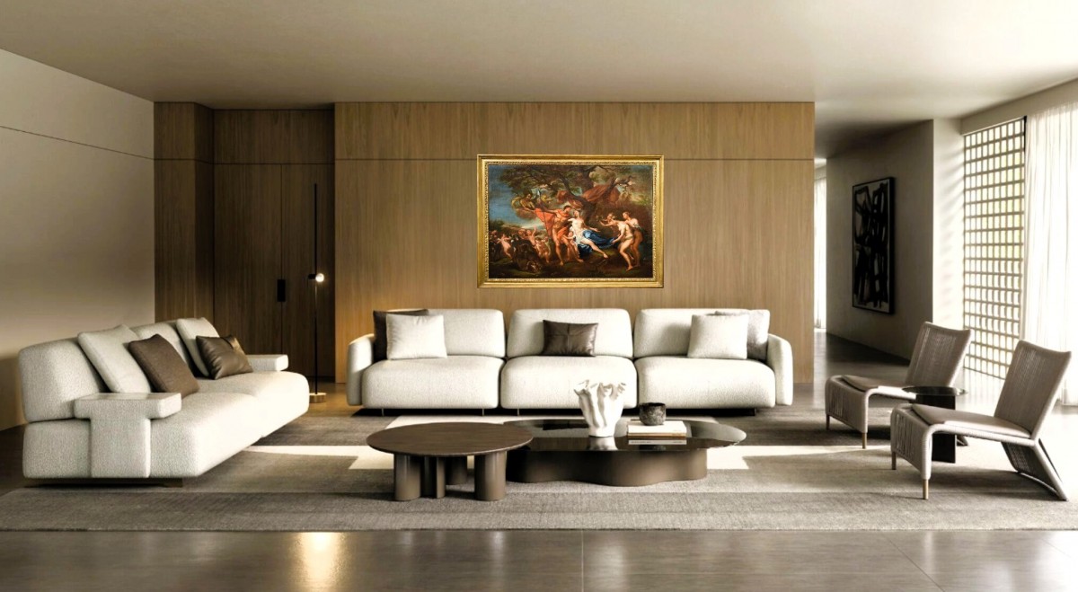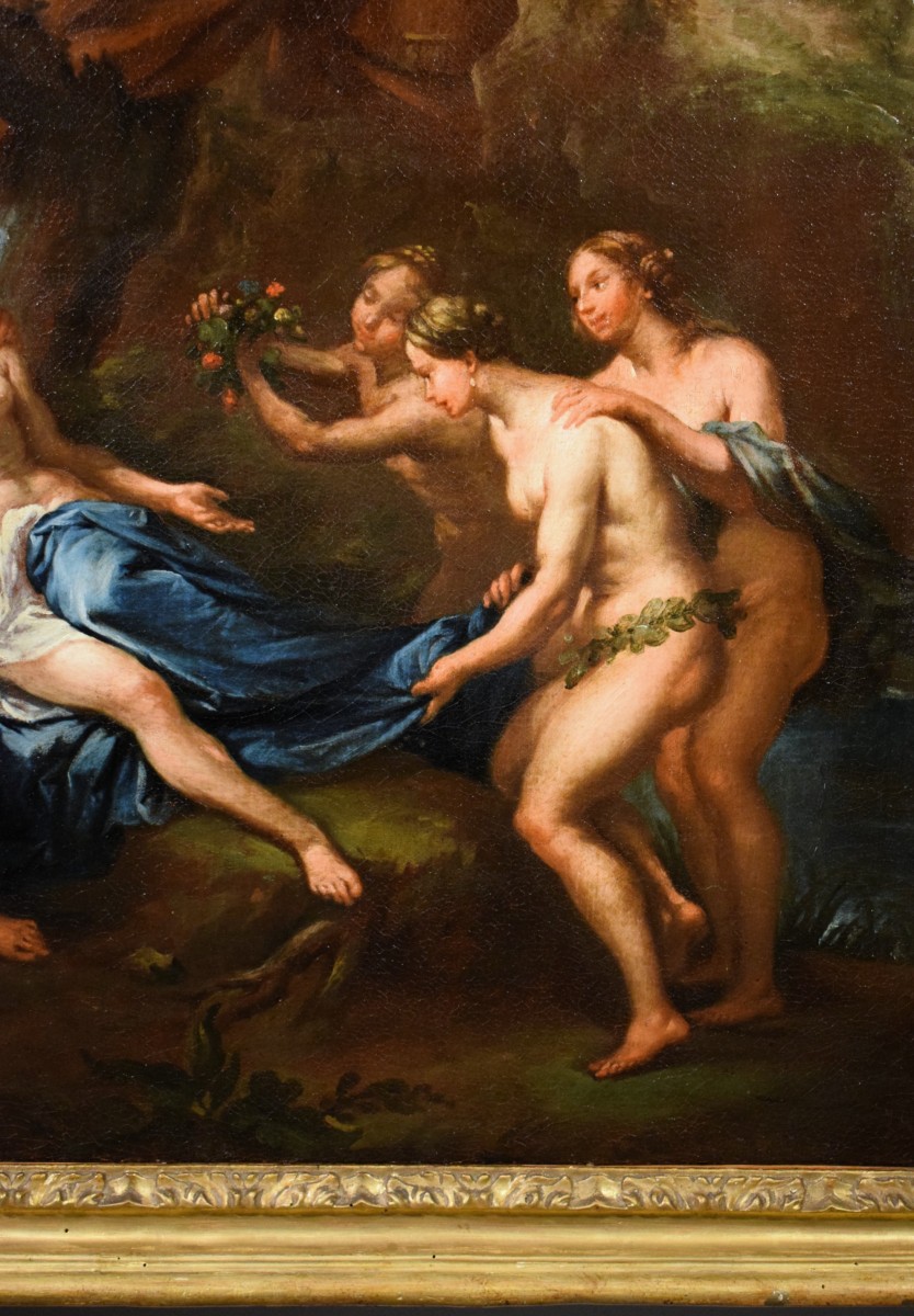 La grande toile présentée ici offre une magnifique représentation de cet épisode, également représenté sous diverses formes par les grands maîtres de la peinture antique.