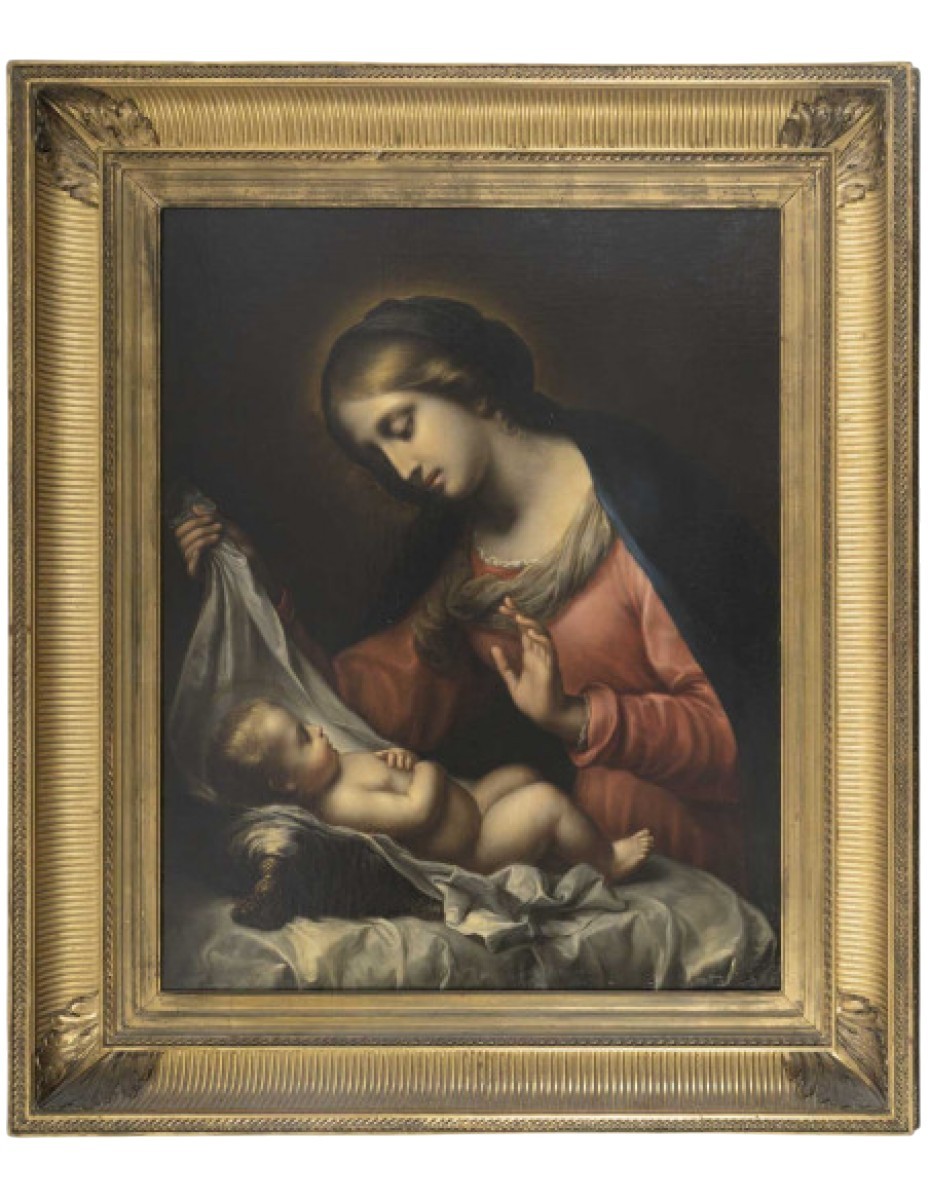 "Vierge à l'enfant", huile sur toile, d'époque XVIIIe siècle.