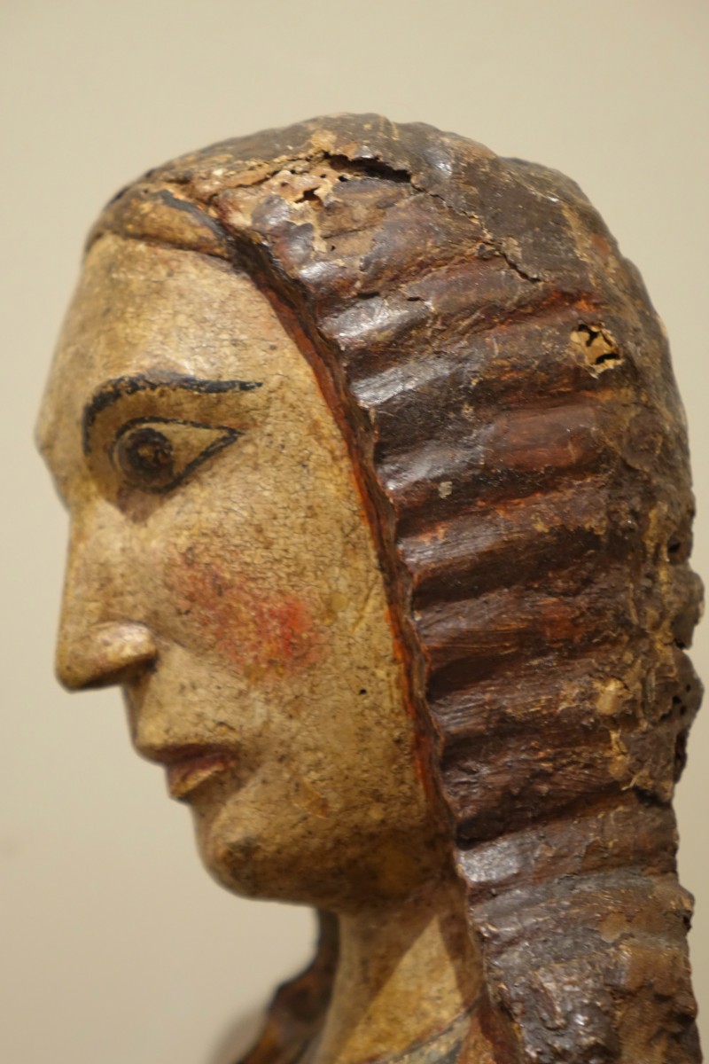 Vierge à l'Enfant"Sedes Sapientiae " ( trône de la sagesse en latin), en bois tendre sculpté en creux à l'arrière .